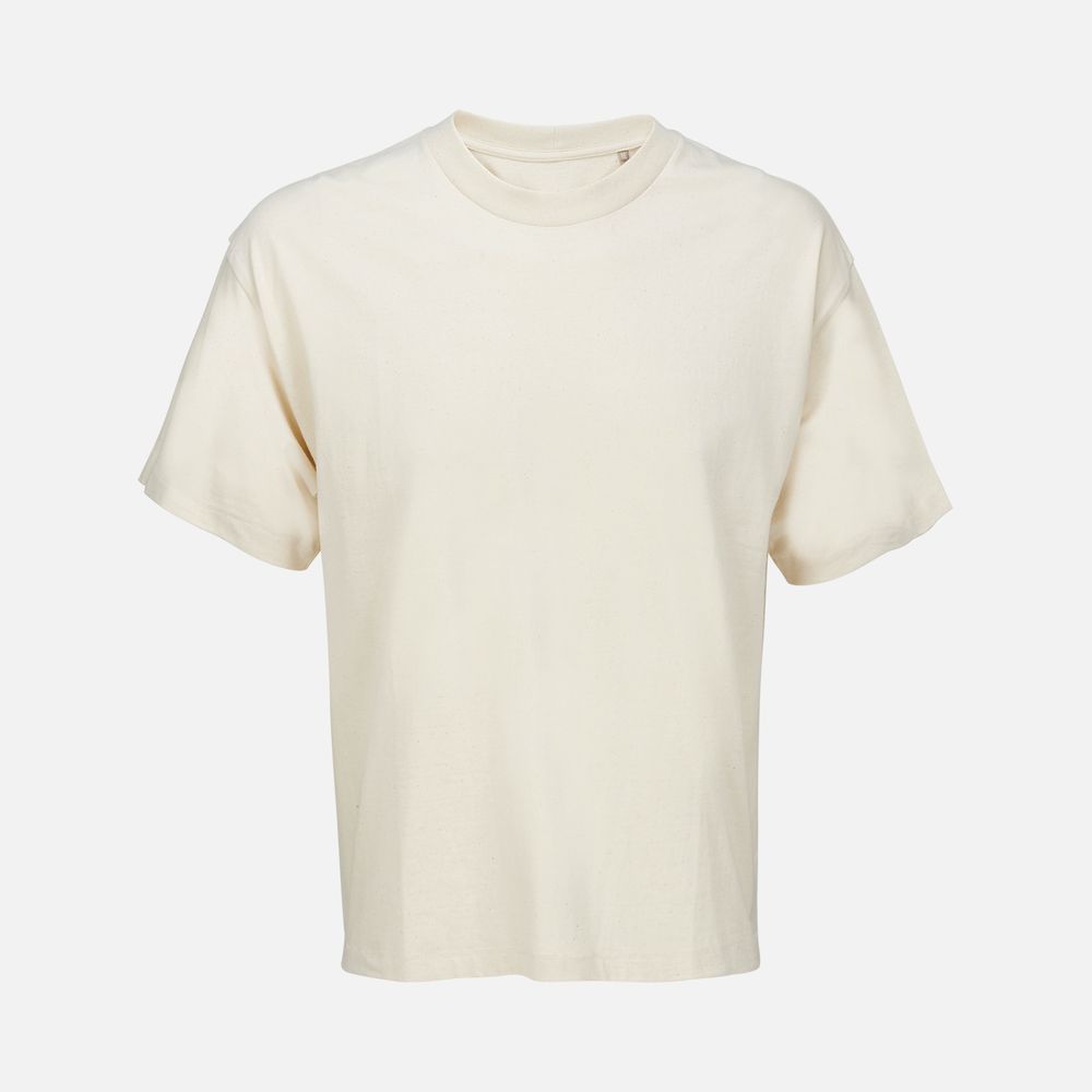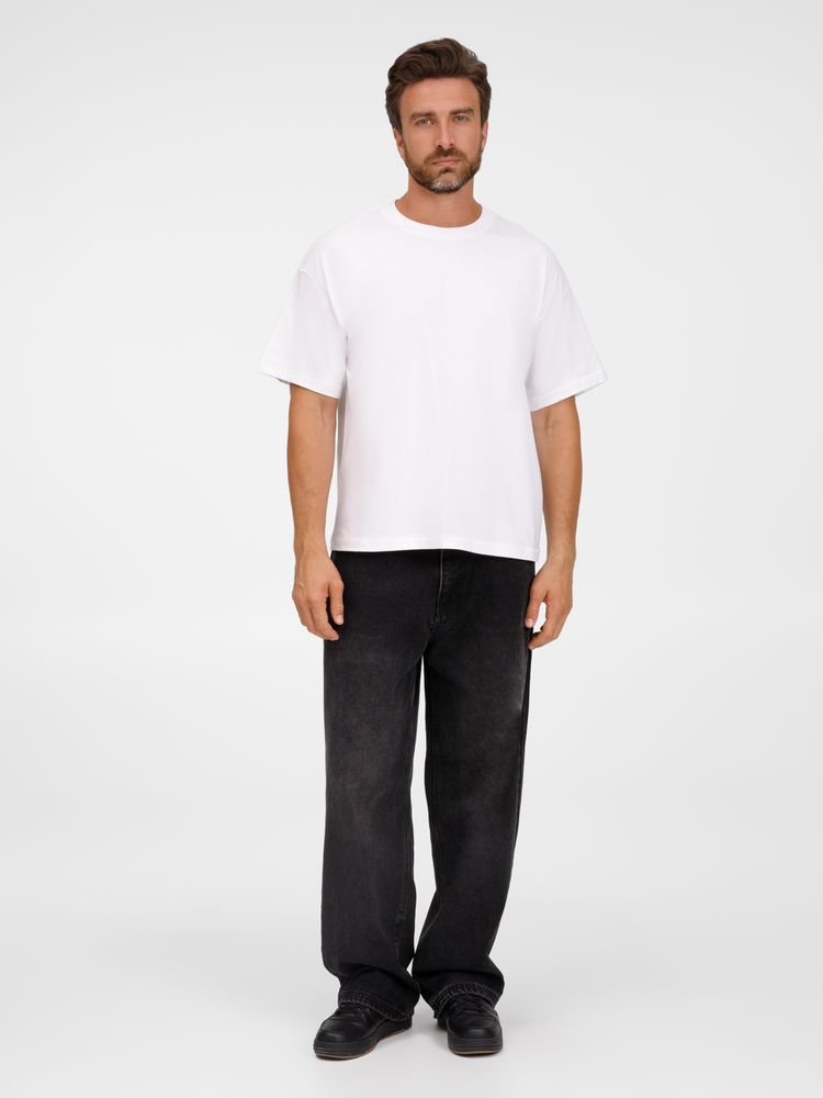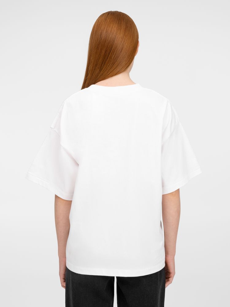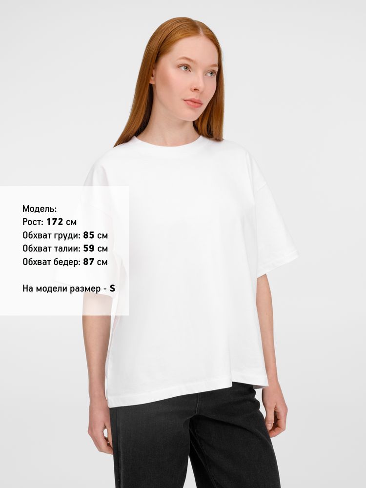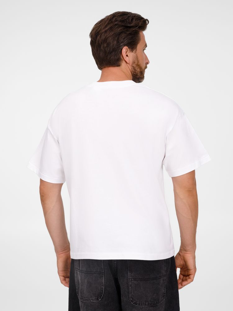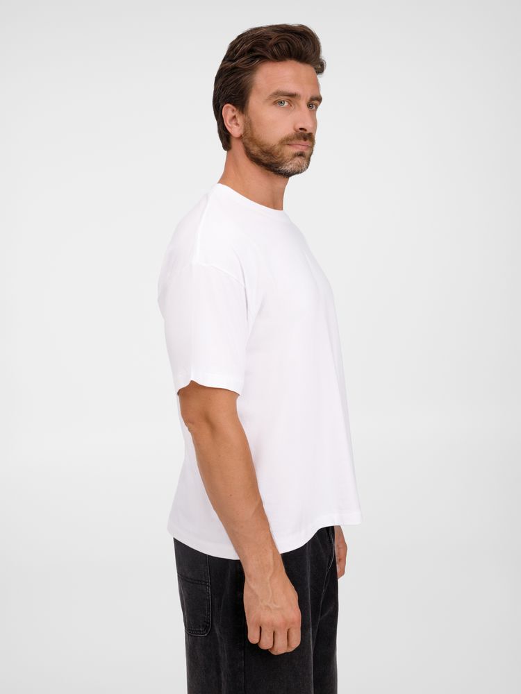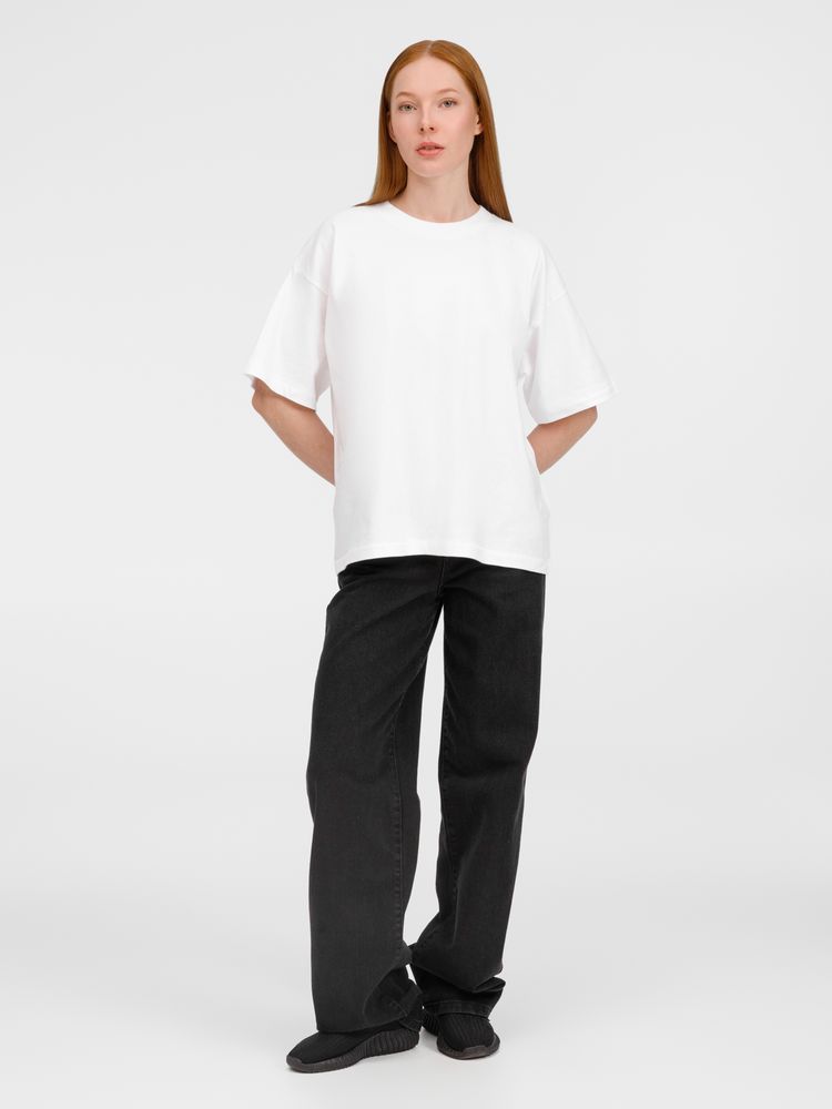 Футболка оверсайз унисекс с круглым вырезом и без боковых швов. Выполнена из смеси органического и обычного хлопка. Благодаря повышенной плотности отлично держит форму.