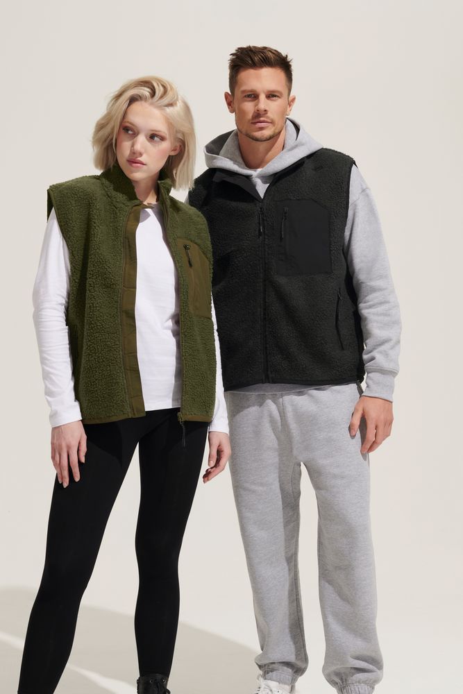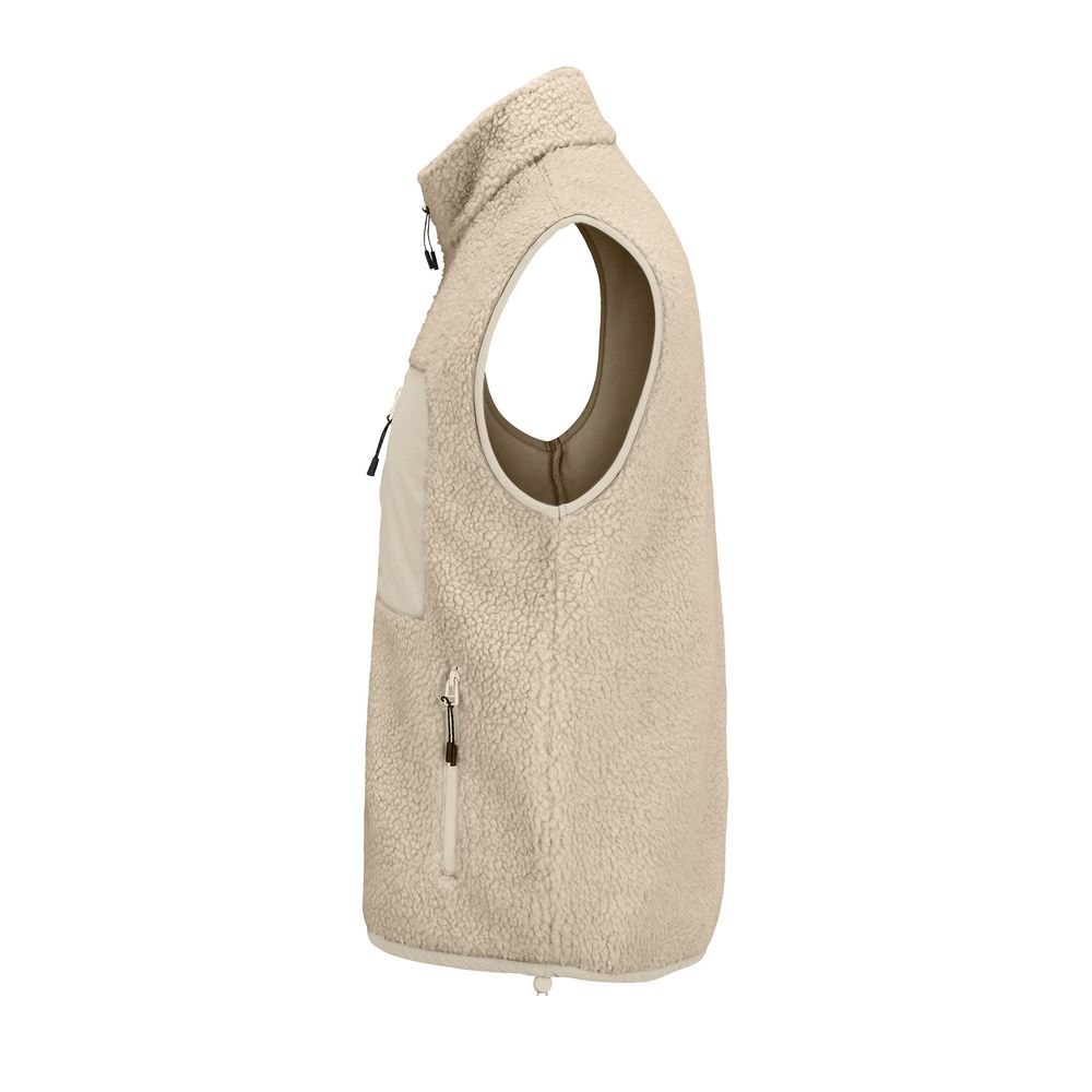 Жилет унисекс из фактурной искусственной шерпы с гладкой отделкой из таслана.