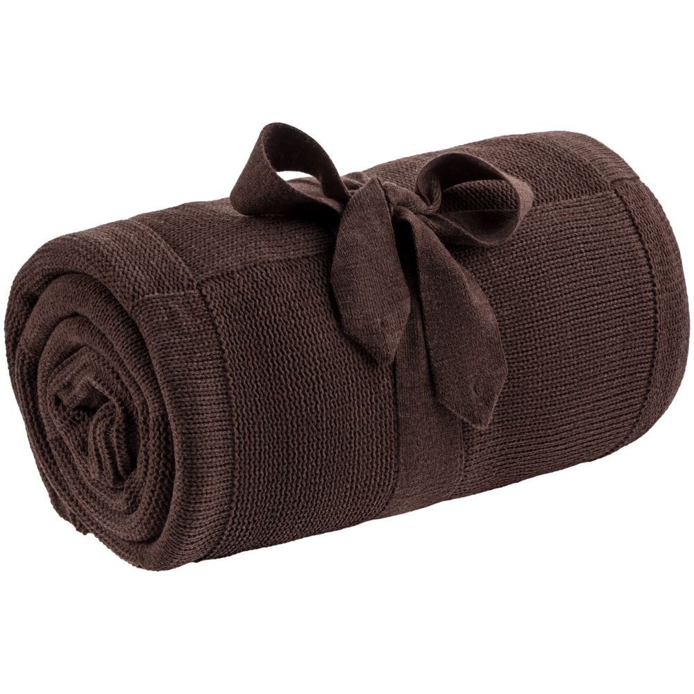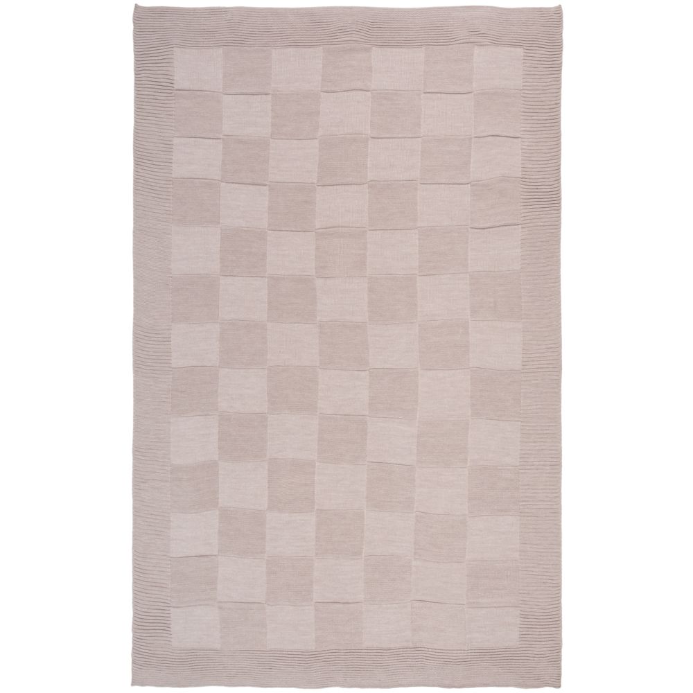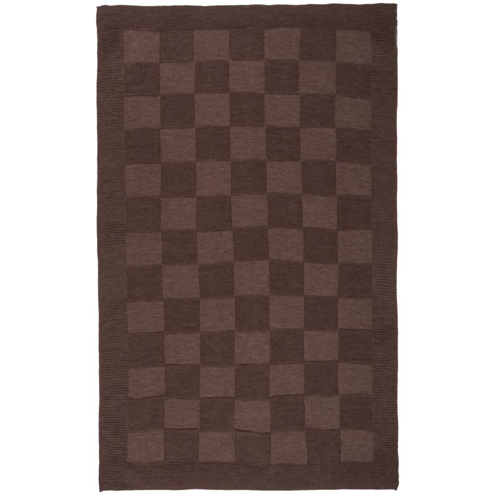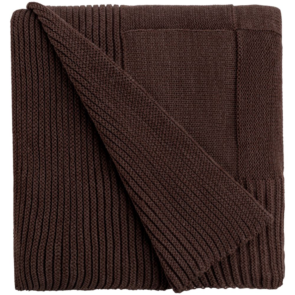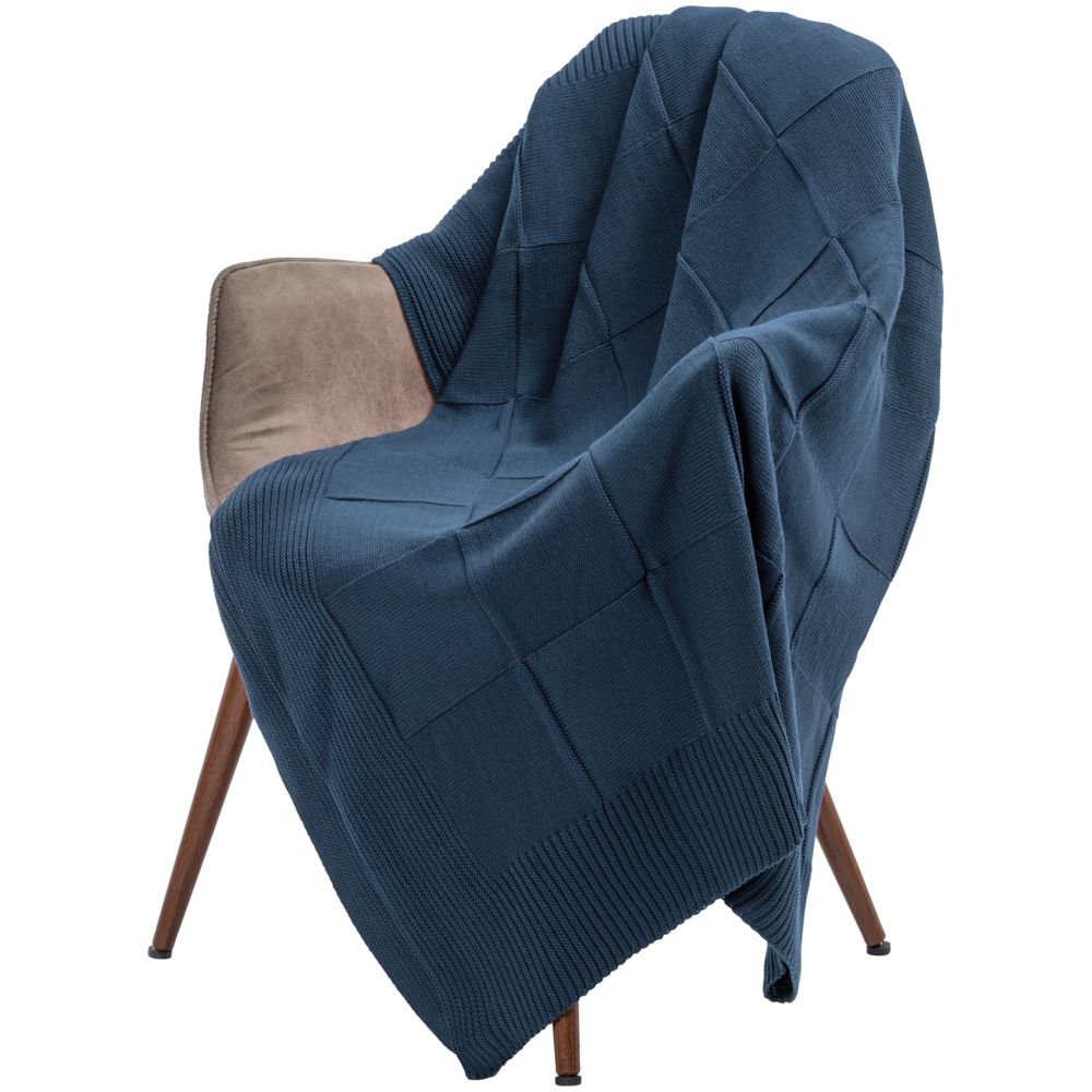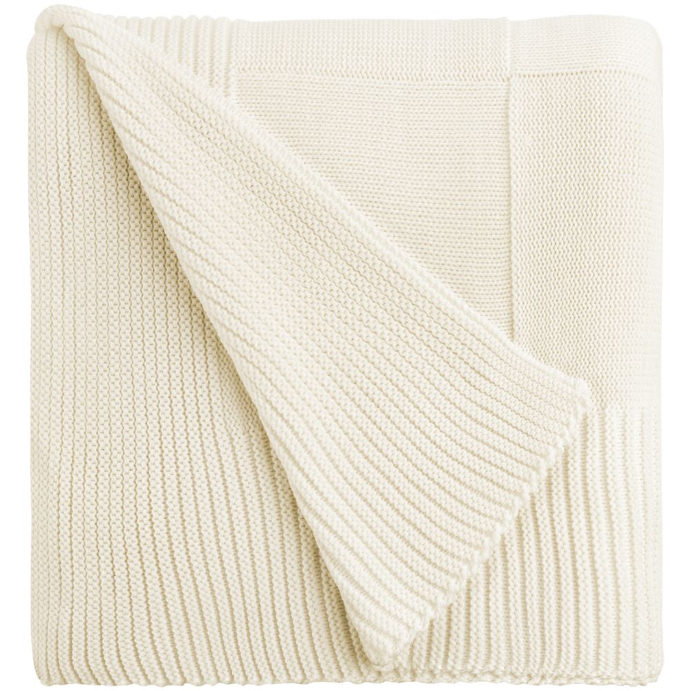 Однотонный плед рельефной вязки «в клеточку» с широким кантом, выполненным резинкой.