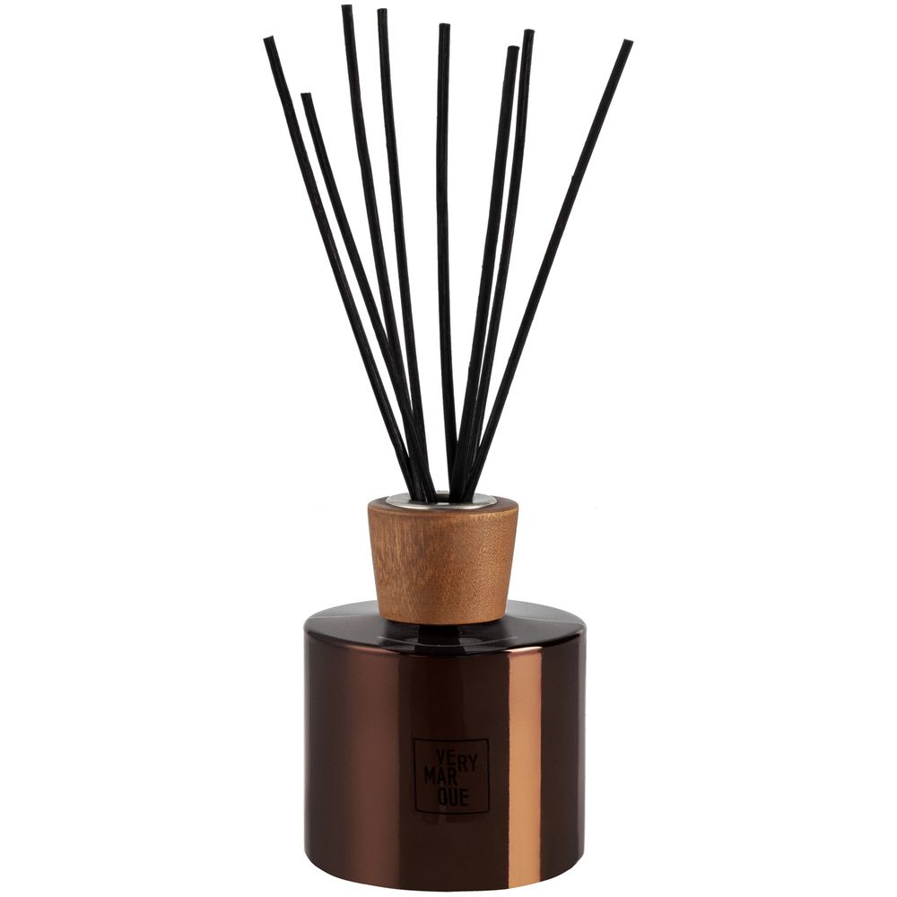 Предметы коллекции выполнены в толстом стекле с медным покрытием и деталями из дерева — так их внешний вид максимально комплементарен аромату.
