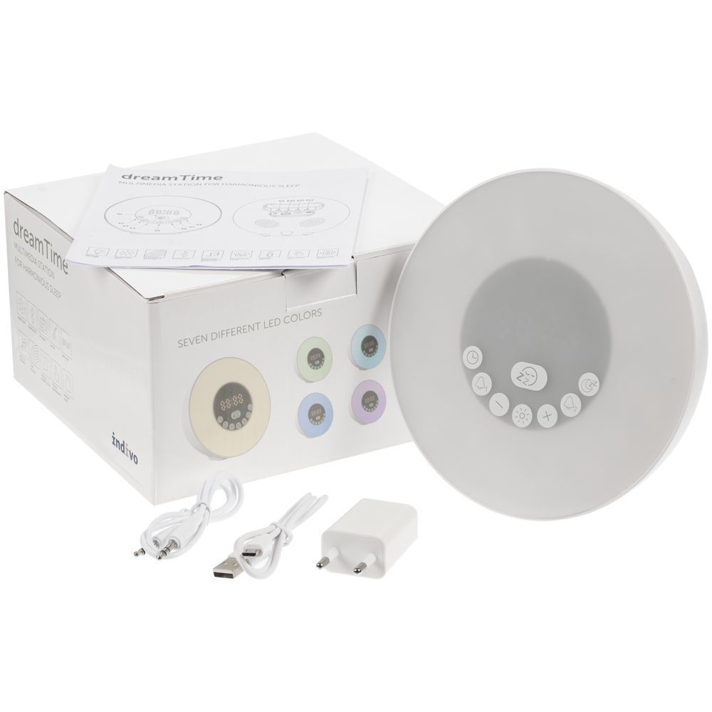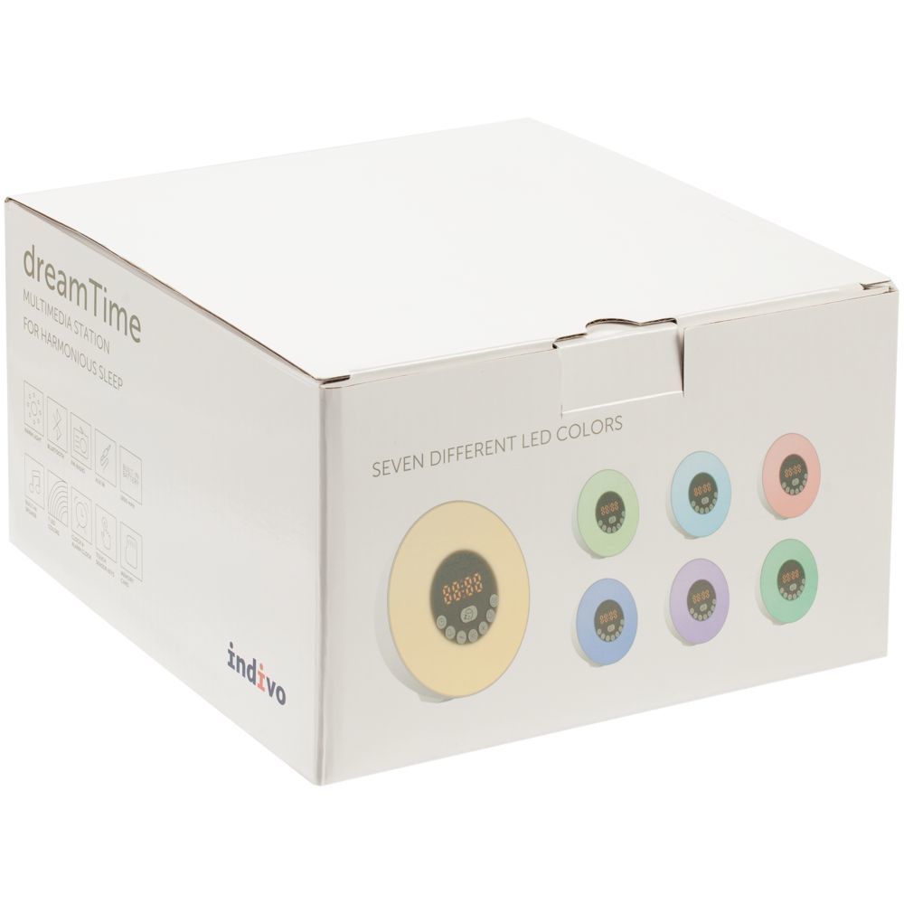 DreamTime — это мультимедийная станция, которая позволяет начать день максимально естественно и вставать «с первыми лучами солнца» в любой день года. Лампа активируется за некоторое время до настроенного будильника и постепенно увеличивает яркость вплоть до момента, когда вы планируете окончательно проснуться. Эффект мягкого пробуждения можно дополнить звуками природы, встроенными в память устройства.