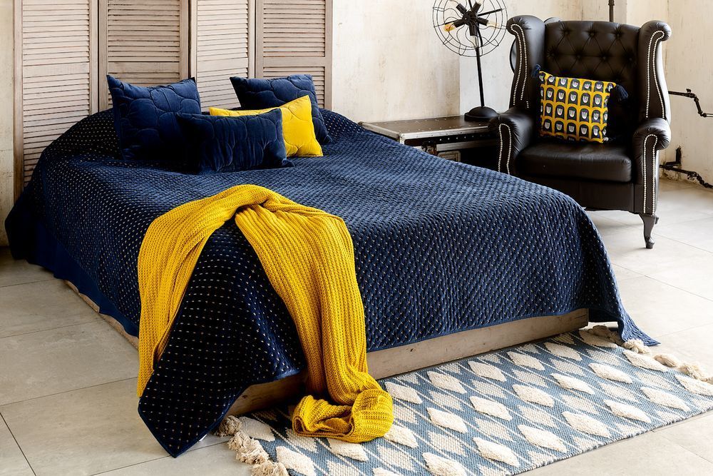 Стеганое бархатное покрывало станет изысканным дополнением к интерьеру гостиной или спальни.