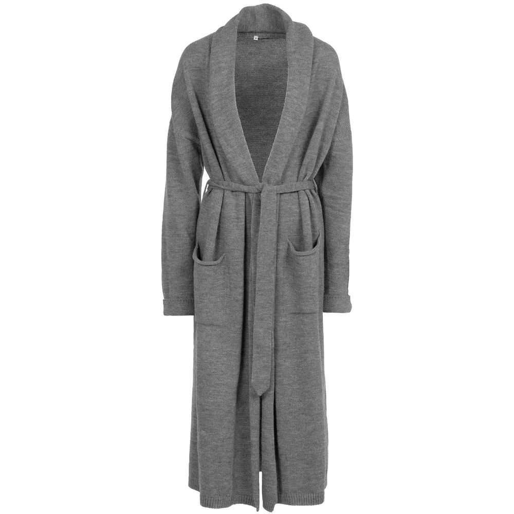 Длинный кардиган-халат чулочной вязки из дополнительно смягченной пряжи.