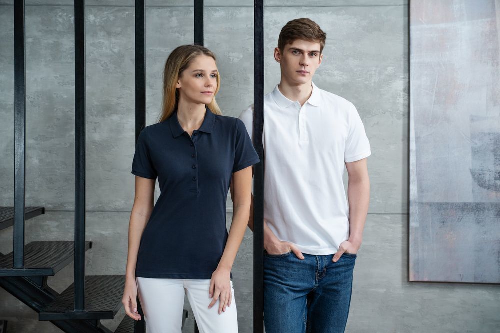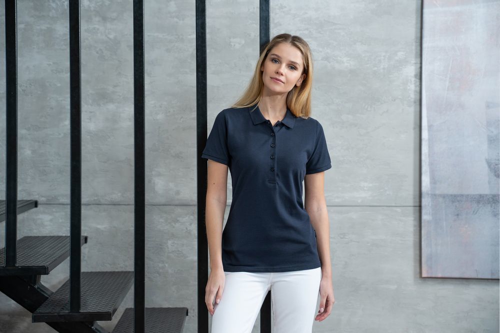 Приталенная женская рубашка поло из гребенного хлопка с пуговицами тон в тон и боковыми разрезами по бокам.