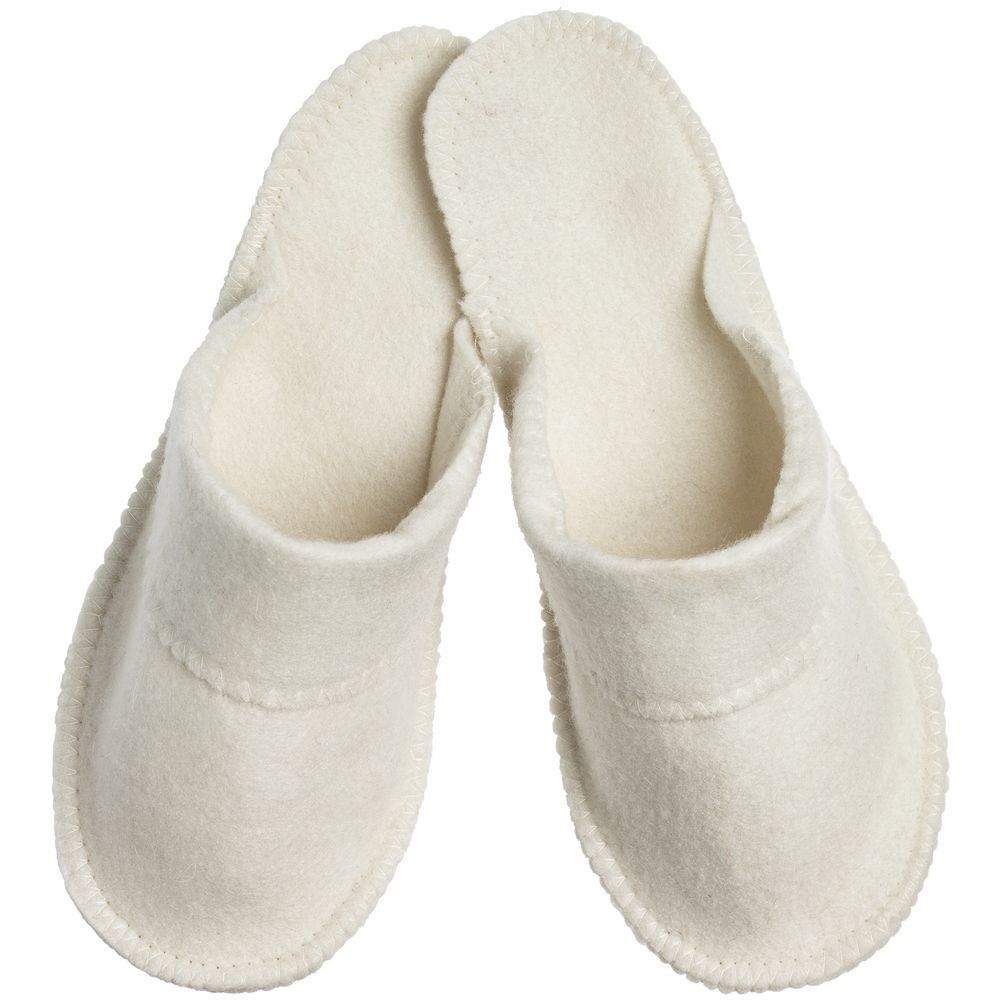 В тапочках из войлока комфортно в более прохладной комнате отдыха, а еще они не дают ногам быстро остыть между заходами в парную.