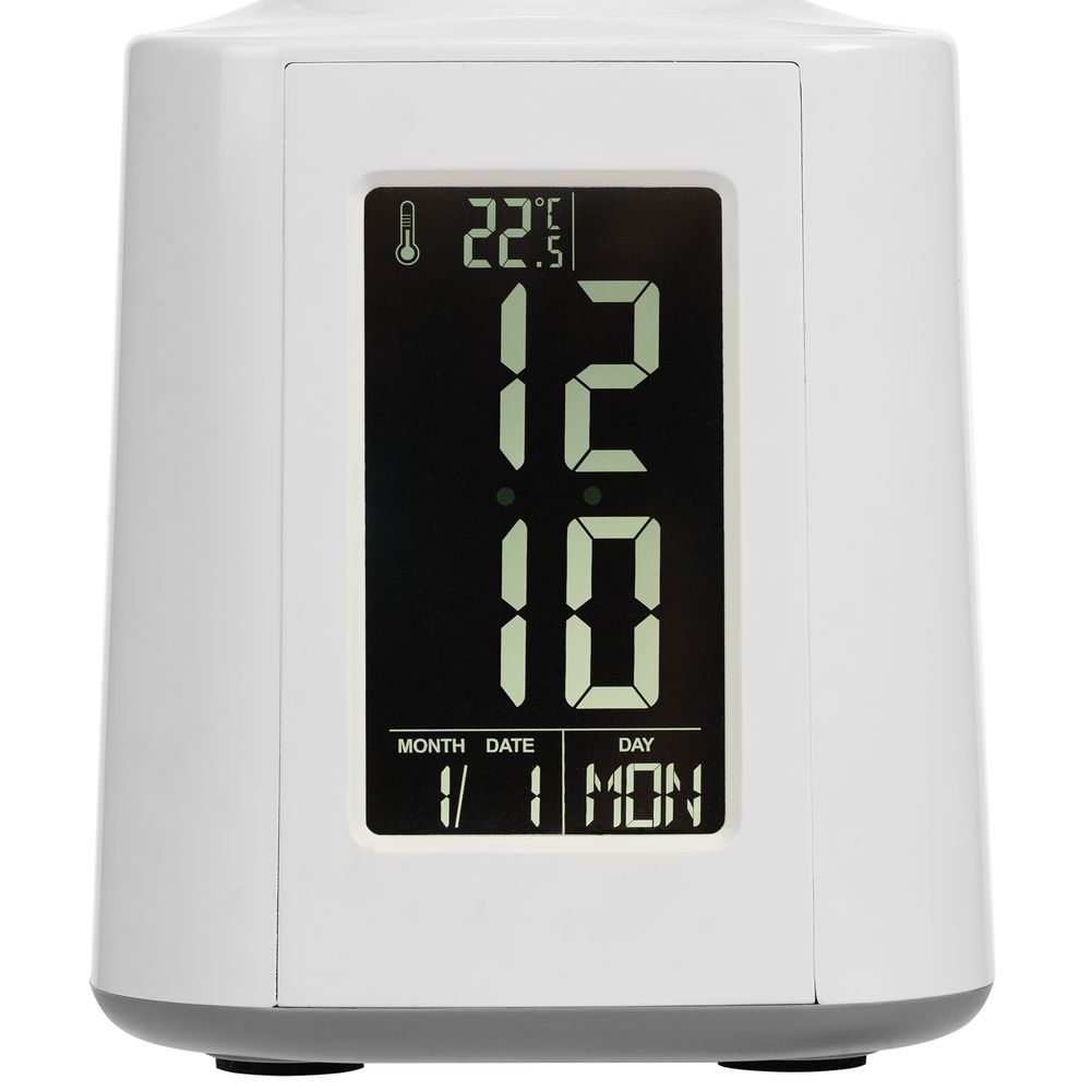 На дисплее отображается время, дата, день недели и температура окружающей среды. Встроенный будильник напомнит о событии или необходимости завершить задачу. Небольшая батарейка типа CR2032 помогает сохранить настройки времени и даты, даже если лампа не подключена к розетке.