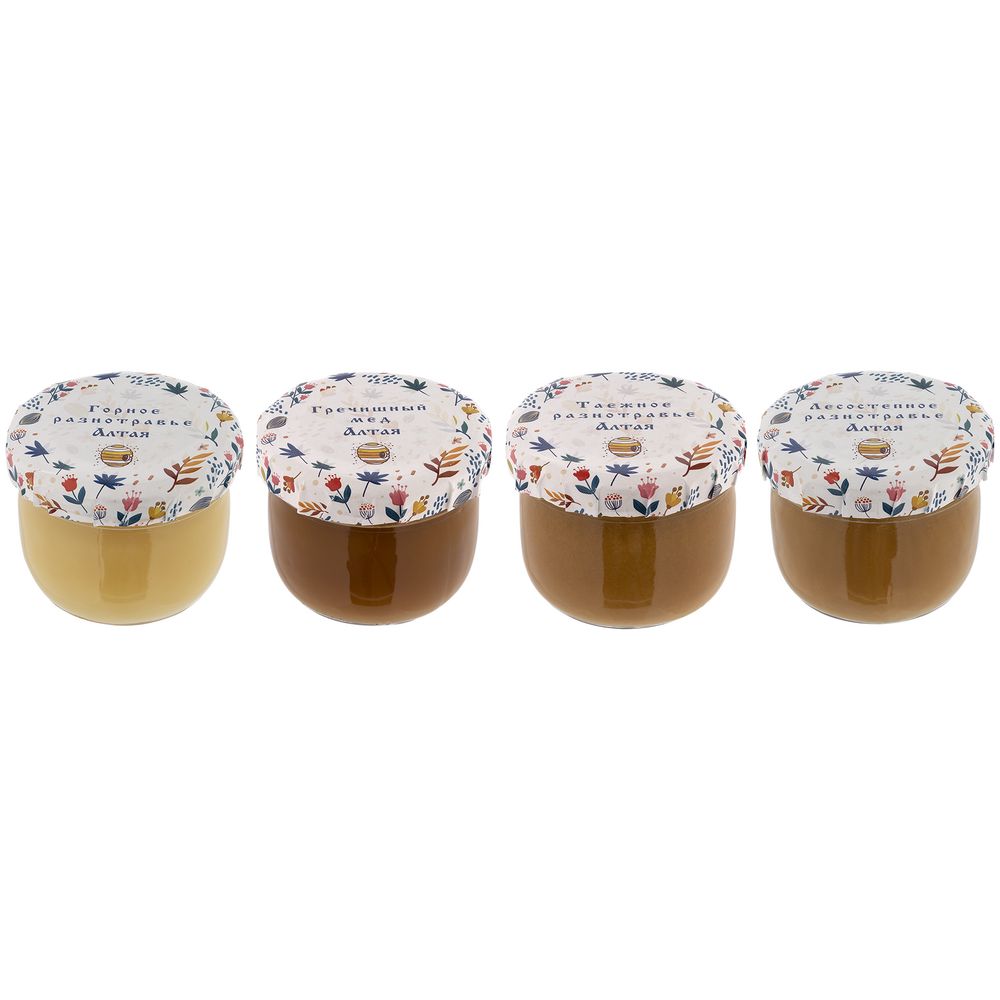 Набор из 4 сортов меда, собранных с пасек Алтайского края.