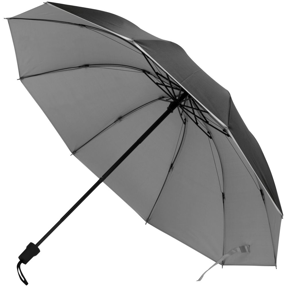 Компактный в сложении, зонт раскрывается широким куполом с серебристой подкладкой.