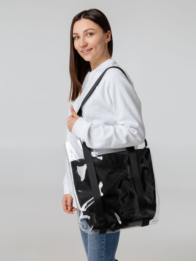 Шопер из ПВХ не промокает, легко чистится и выглядит стильно в любое время года и в любую погоду.