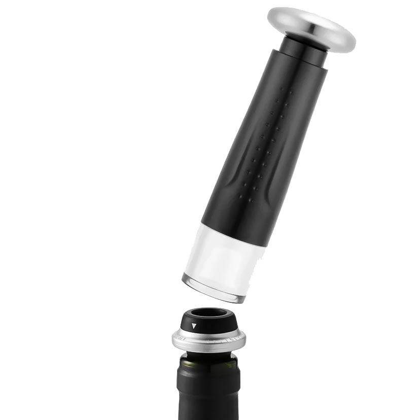 - В комплекте электрический штопор для вина с открывашкой для пива, нож для фольги, пробка-аэратор, вакуумный насос с двумя силиконовыми пробками, подставка, инструкция