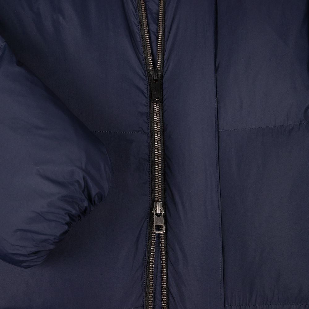 Удлиненный пуховик унисекс с капюшоном.
