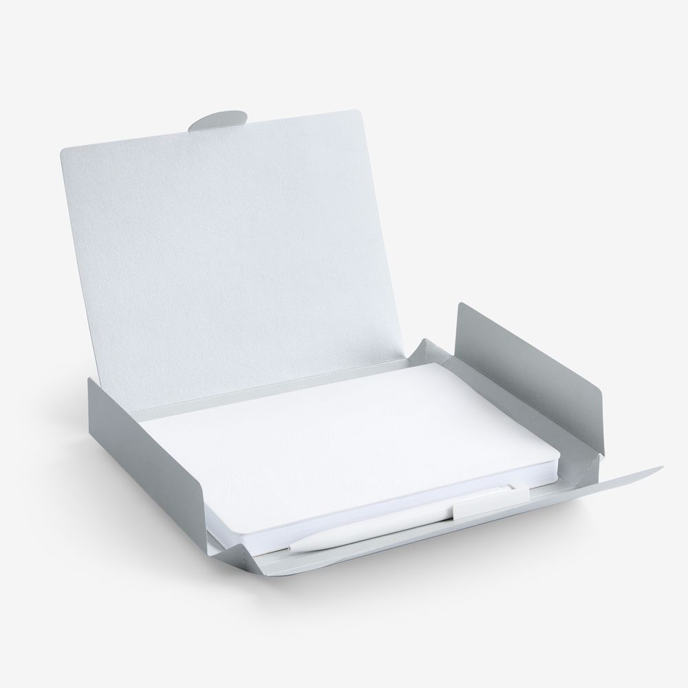 Недатированный ежедневник с гибкой обложкой из фактурного материала La Fite и металлическим шильдом на ляссе и ручка в тон, упакованные в подарочную коробку из дизайнерского картона.
