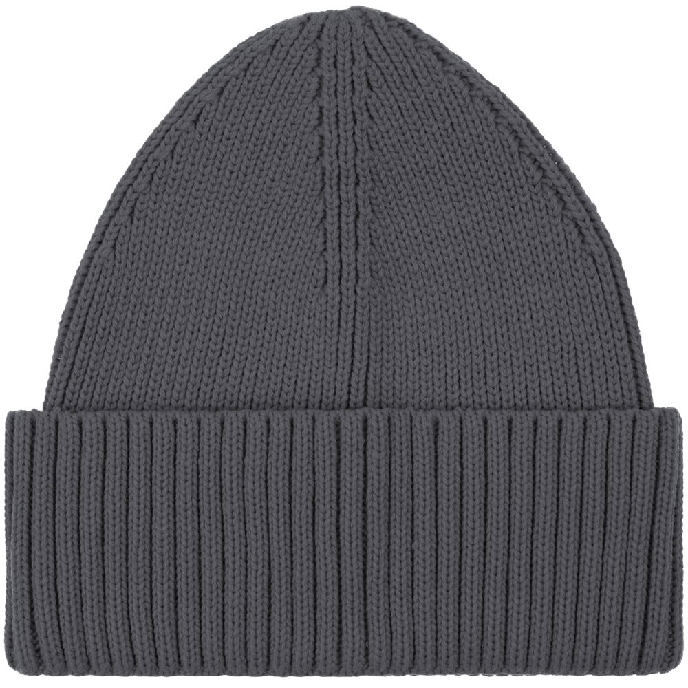 Цельновязанная однослойная шапка из высокообъемной пряжи с отворотом.