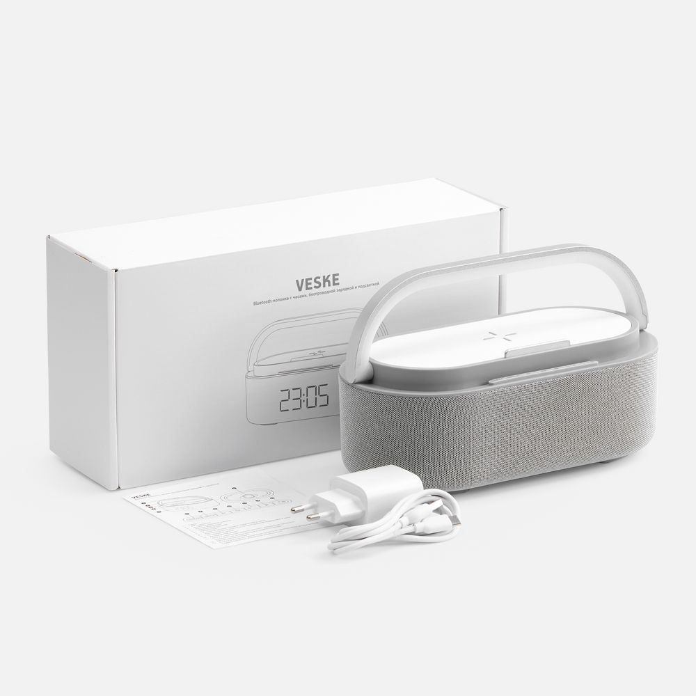 Колонка с часами и беспроводной зарядкой Veske ver.2, серая