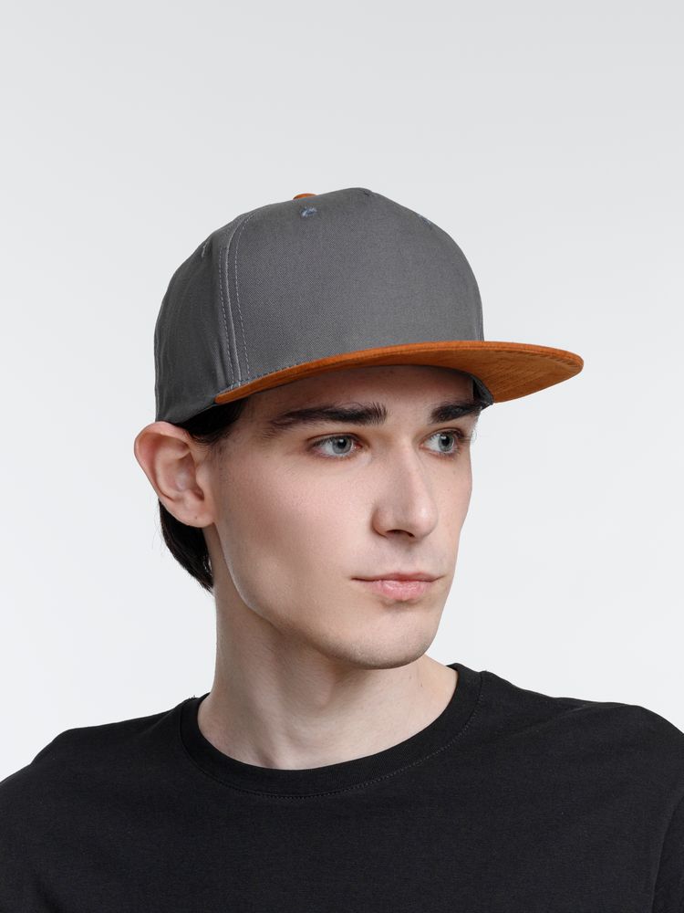 - Плотный контрастный прямой козырек из мягкой, приятной на ощупь ткани с велюровым эффектом