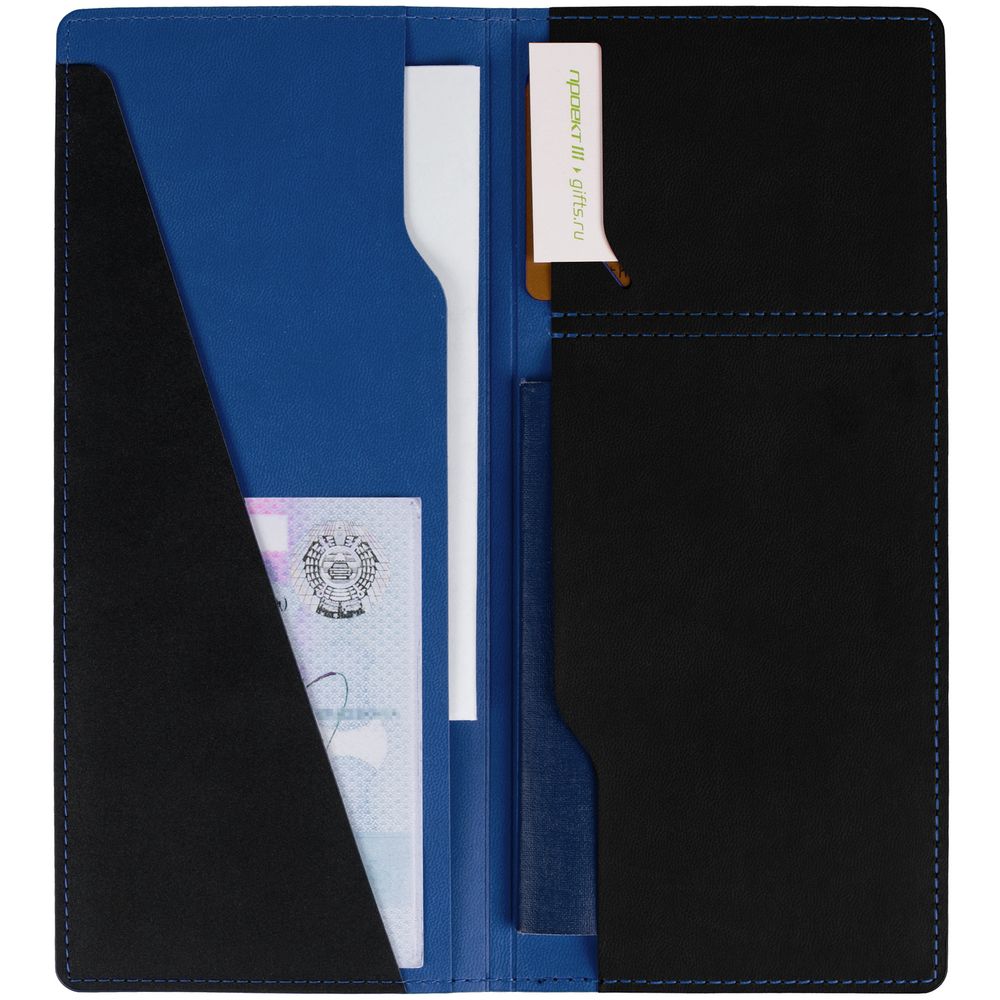 Имеет 5 отделений: для билетов, паспорта, визиток или кредитных карт.