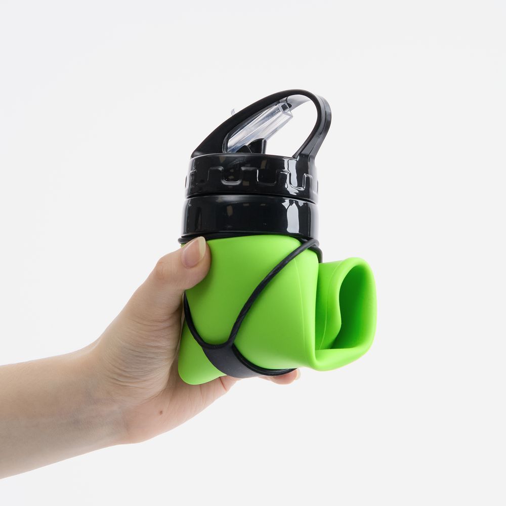 Складная силиконовая бутылка для воды Langfossen отлично подойдет для любителей спорта и туризма, а также для тех, кто выбирает спортивный стиль и функциональность каждый день. Она легкая, ударопрочная и компактная в сложенном виде: чтобы сэкономить пространство в сумке, нужно просто скрутить бутылку и закрепить ее силиконовой петлей. Хлястик также можно сложить петлей и использовать как ручку для переноски или крепления бутылки —к рюкзаку или сумке снаружи.