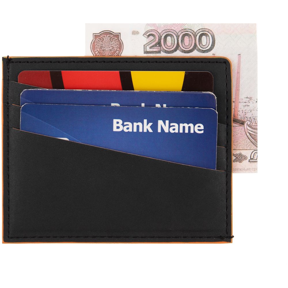 Имеет 4 отделения для кредитных карт и 1 отделение для купюр.