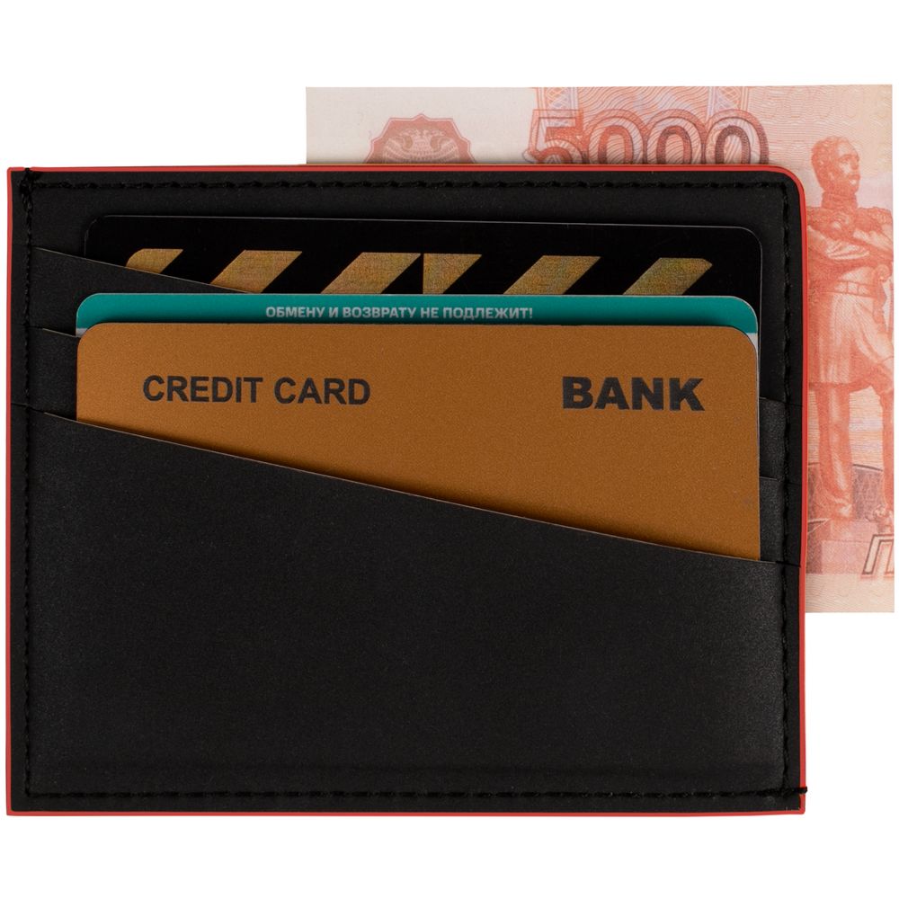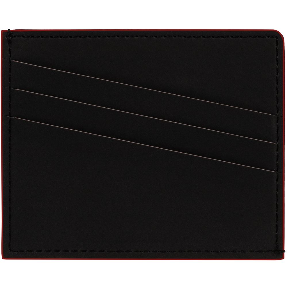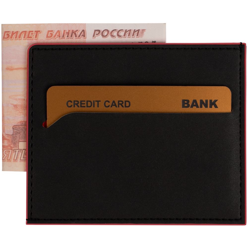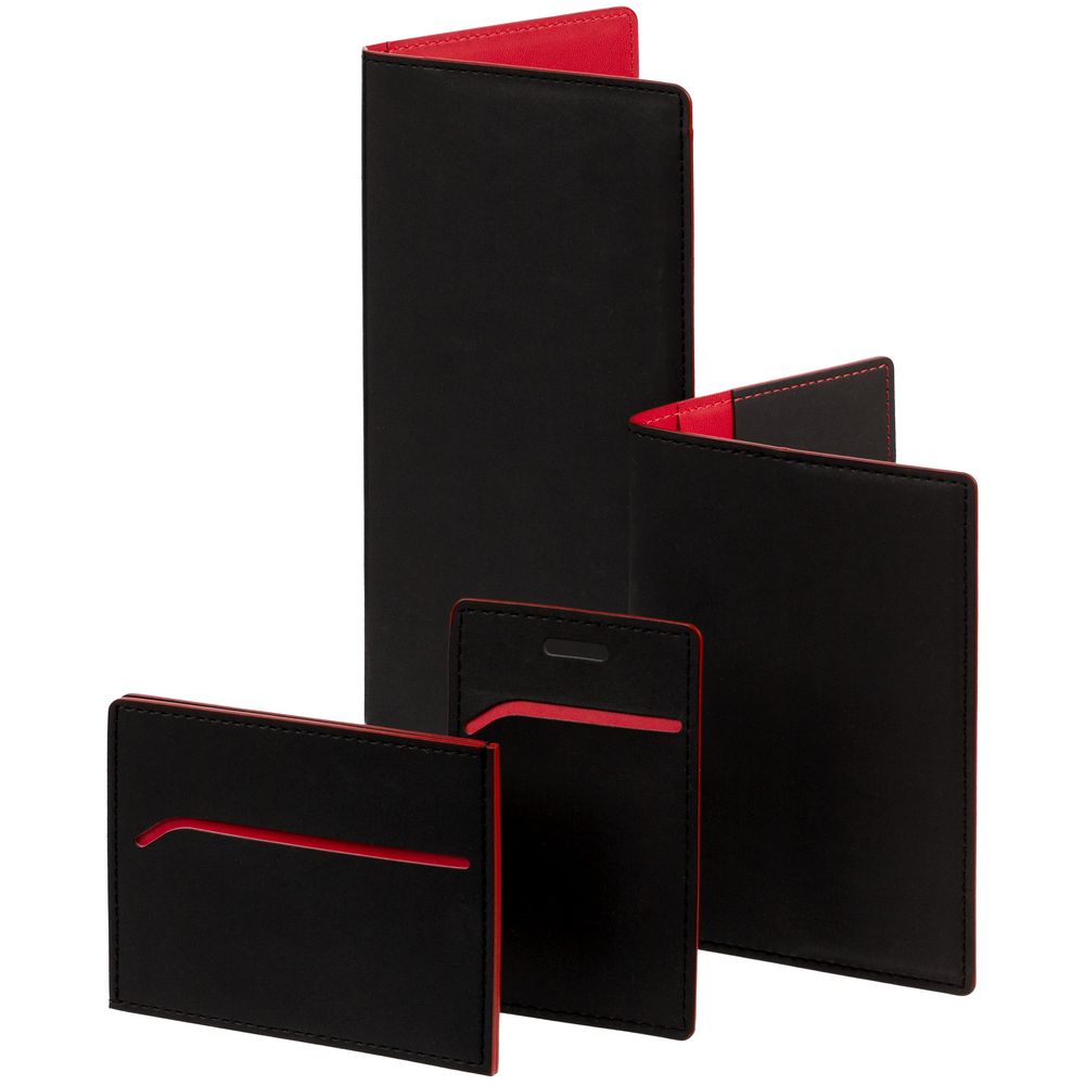 Чехол выполнен из материала Soft Touch Pearl, черный АА, дополнен окрашенным срезом края и цветным внутренним карманом из материала Latte, красный РР.