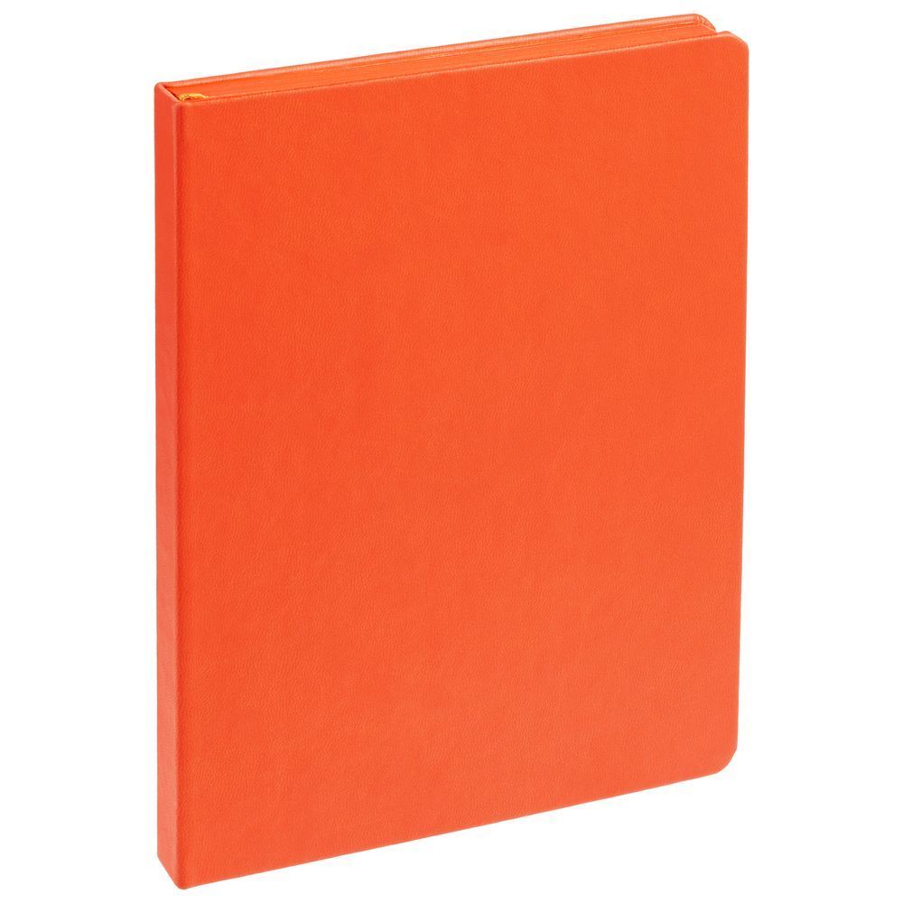 Ежедневник с твердой обложкой и тонированным обрезом. Выполнен из материала Latte, оранжевый ОО, дополнен ляссе в цвет обложки.