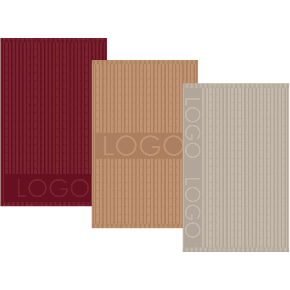 Плед с вывязанным логотипом и рельефным узором в фирменном цвете вашей компании.