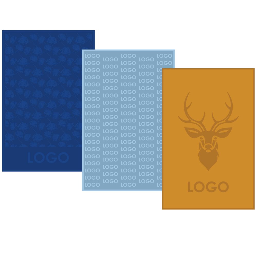 Плед с вывязанным логотипом и рельефным узором в фирменном цвете вашей компании.