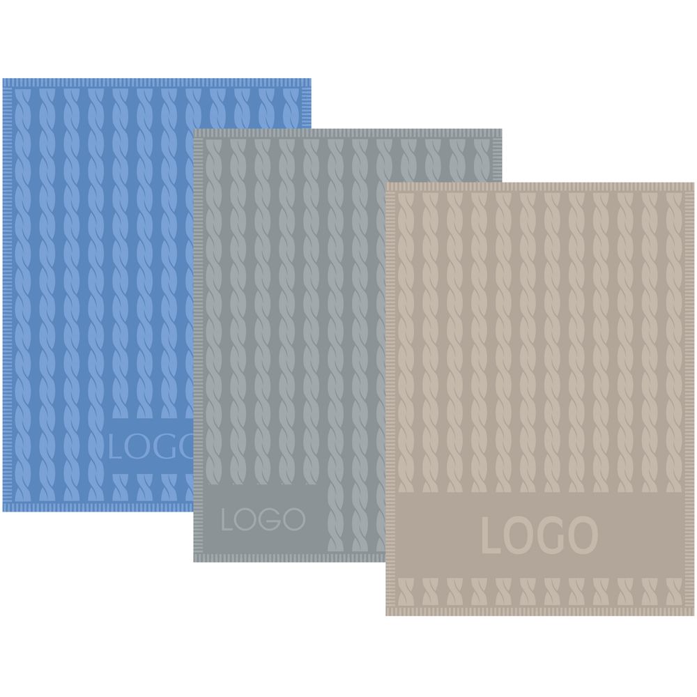 Плед с вывязанным логотипом и рельефным узором в фирменном цвете вашей компании.