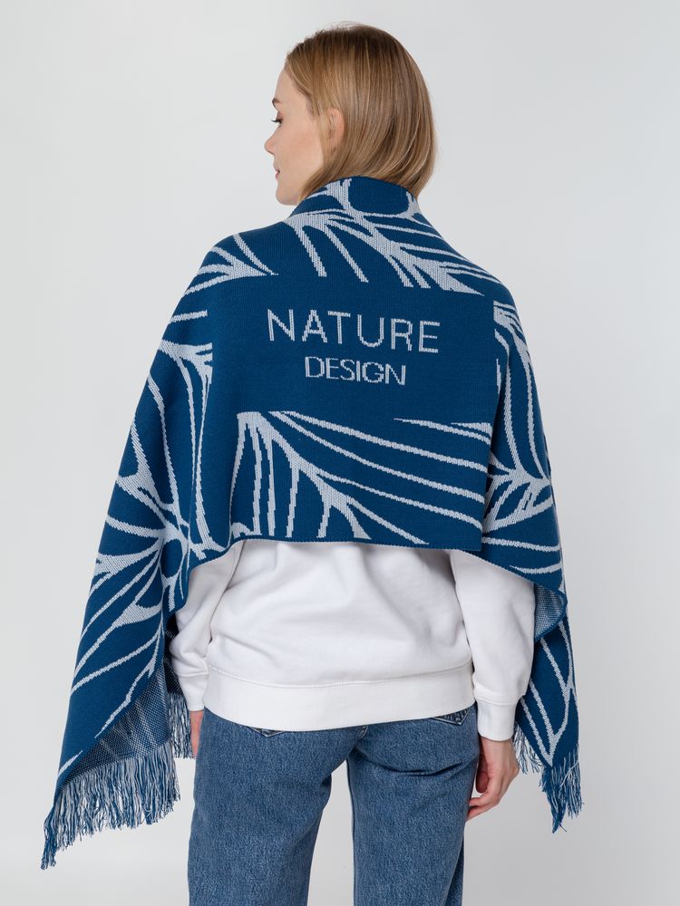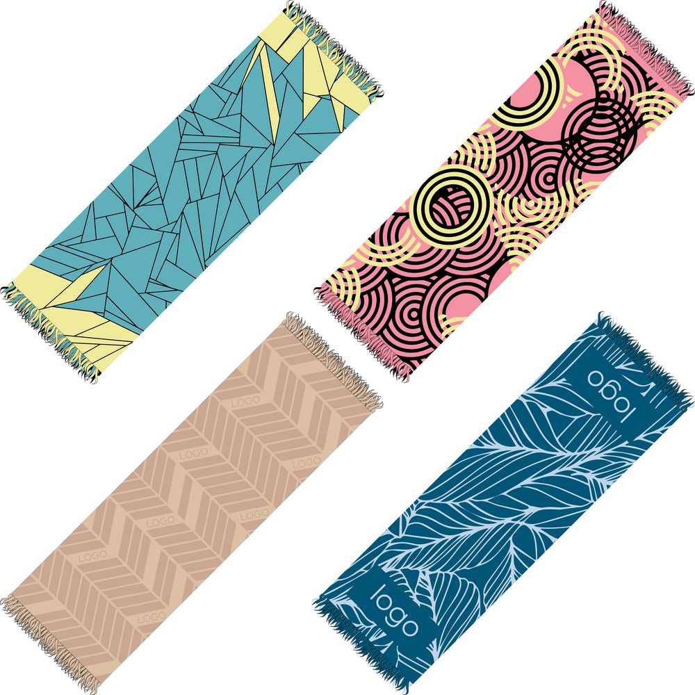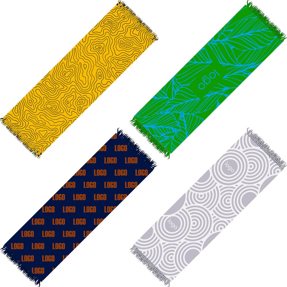 Палантин с бахромой с вывязанным логотипом и индивидуальным рисунком в фирменной цветовой гамме.