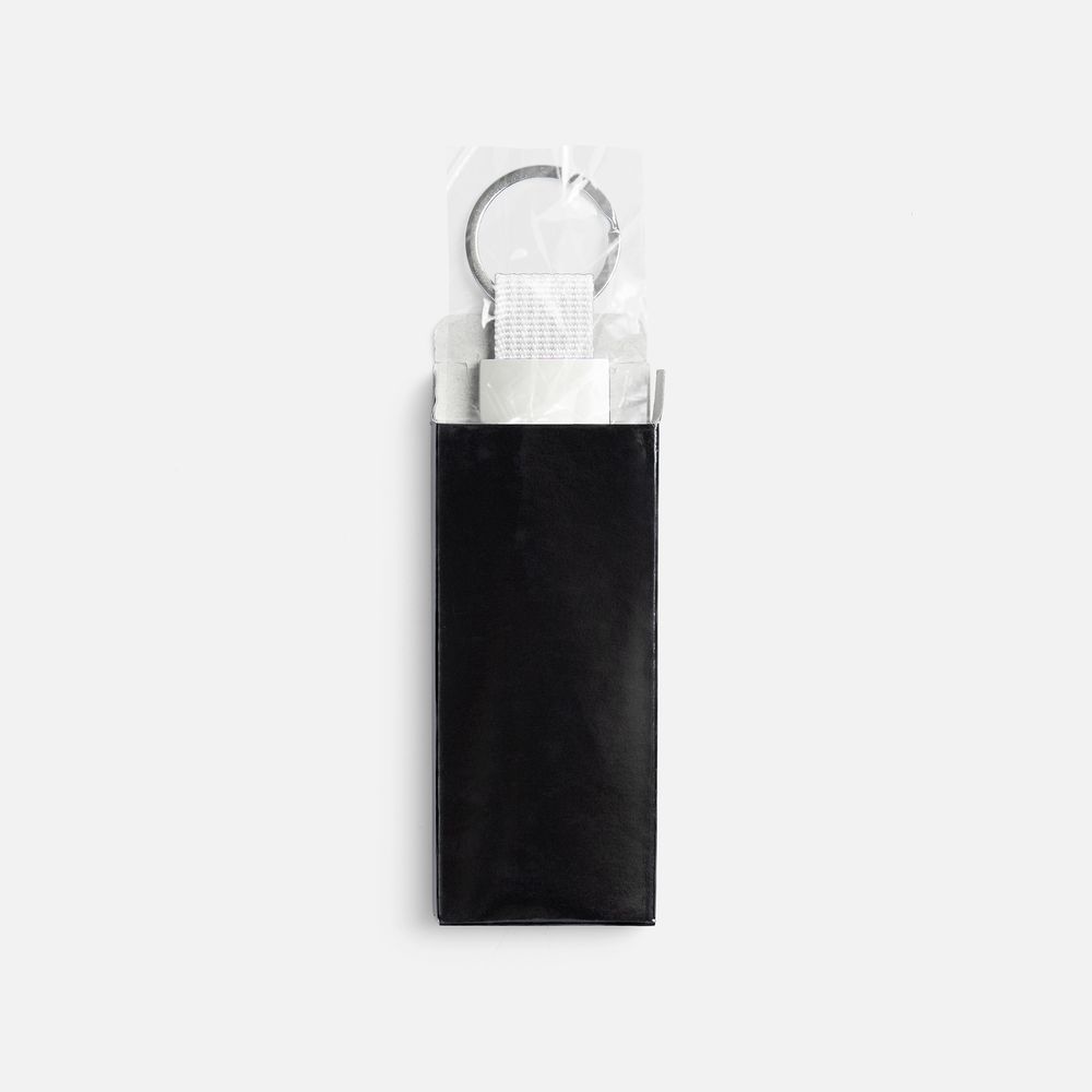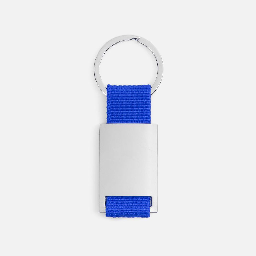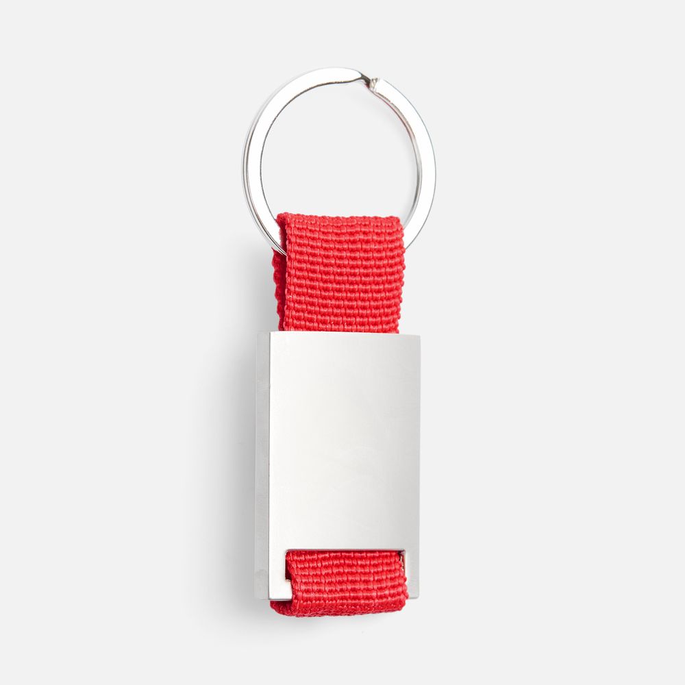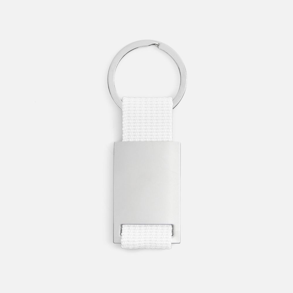 Минималистичный металлический брелок с тканевой вставкой.
