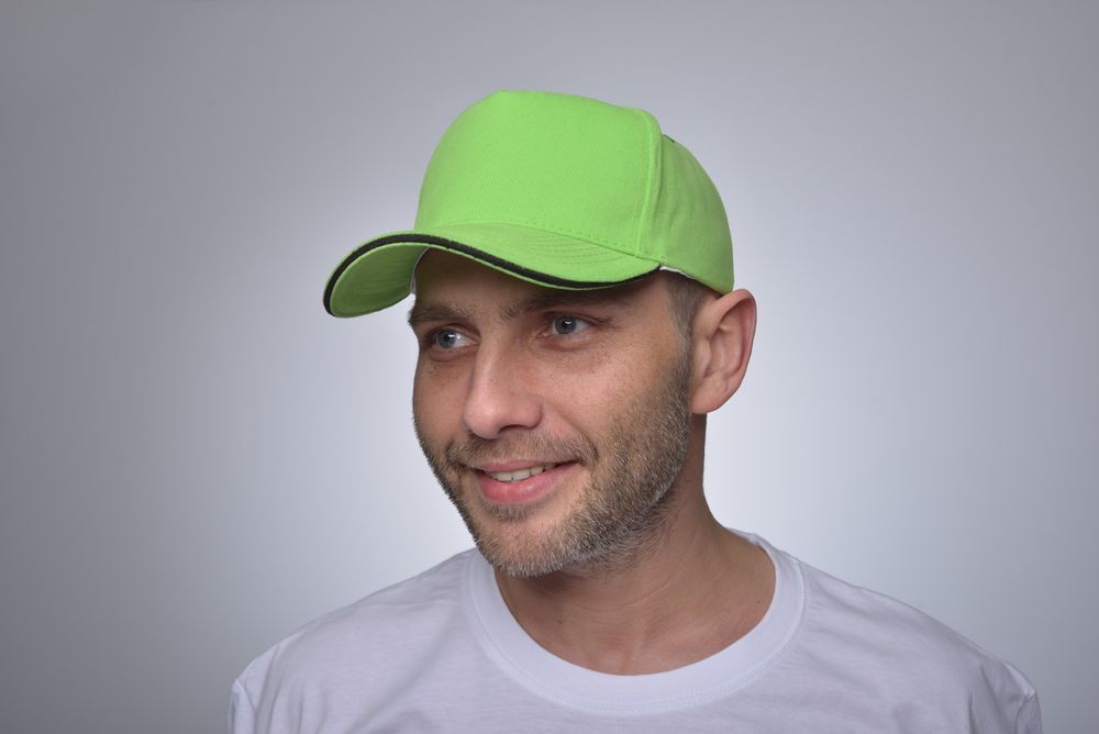 Модель: 5 клиньев без лобового шва, металлические люверсы и застежка, козырек "сэндвич".