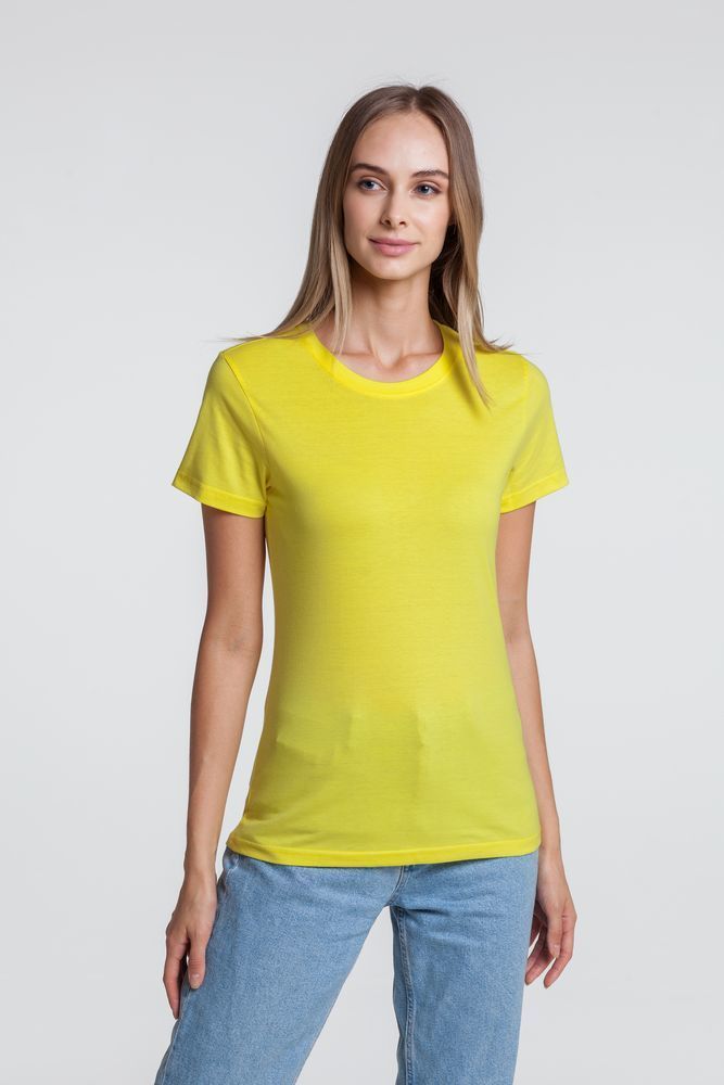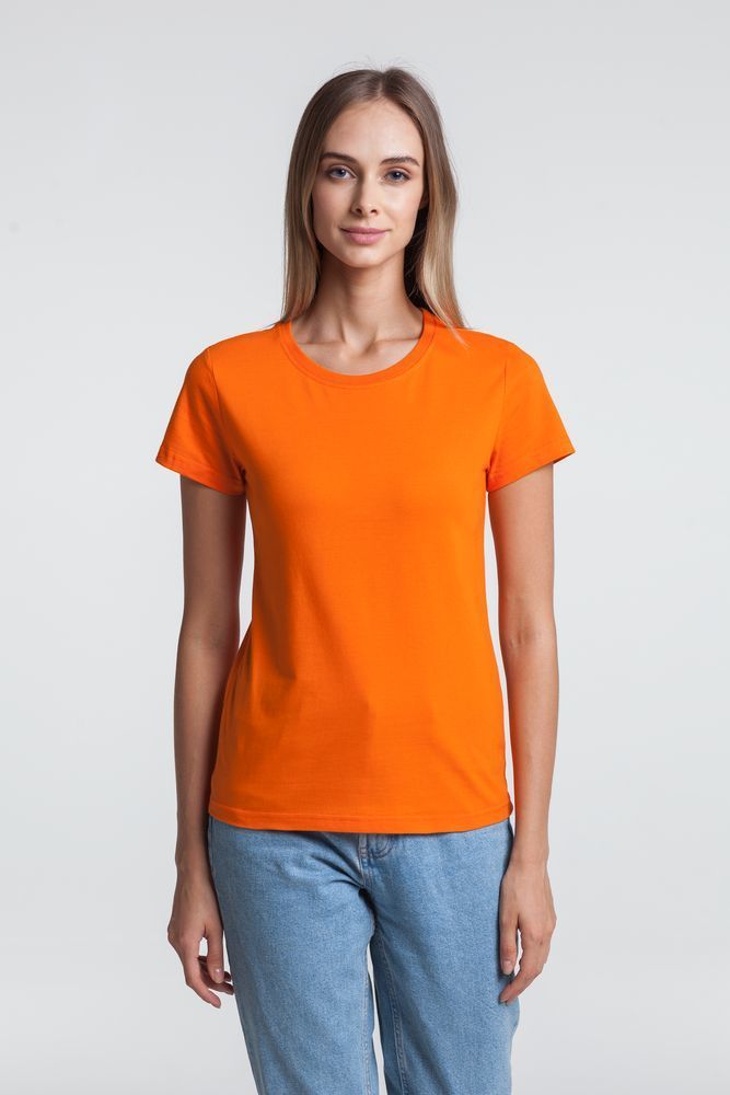 Приталенная женская футболка с боковыми швами. Выполнена из высококачественного полотна джерси (кулирная гладь), которое прошло предварительную термоусадку, поэтому изделие долго сохраняет свою форму, не деформируется и не выцветает при стирке. Поверхность футболки идеально подходит для всевозможных видов нанесения благодаря использованию особо гладкой гребенной пряжи.