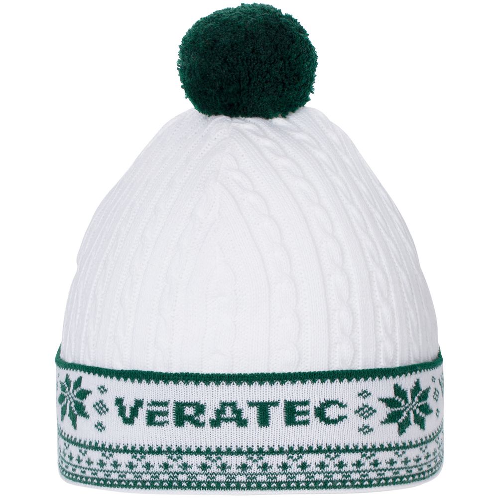 Шапка с вывязанным логотипом и/или индивидуальным рисунком в фирменной цветовой гамме.