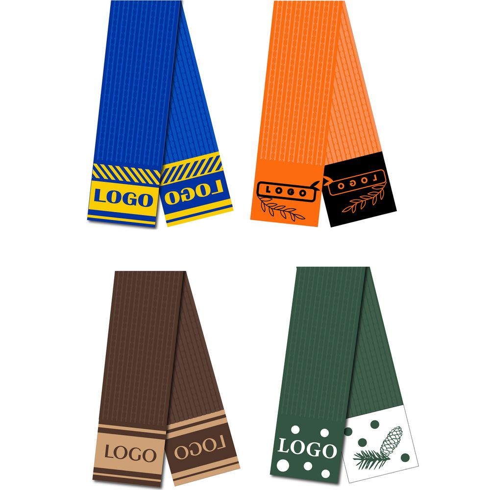 Шарф с вывязанным логотипом и индивидуальным рисунком в фирменной цветовой гамме.