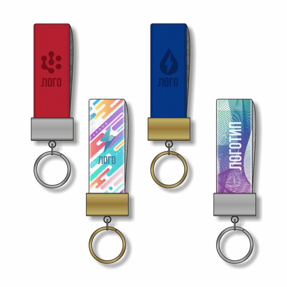 Полноцветная печать с одной стороны на белом материале или блинтовое тиснение на цветном материале входит в стоимость изделия.Брелок в форме петли из материала, имитирующего сафьяновую кожу, с мягкой фетровой подкладкой серого цвета и разрезным кольцом.