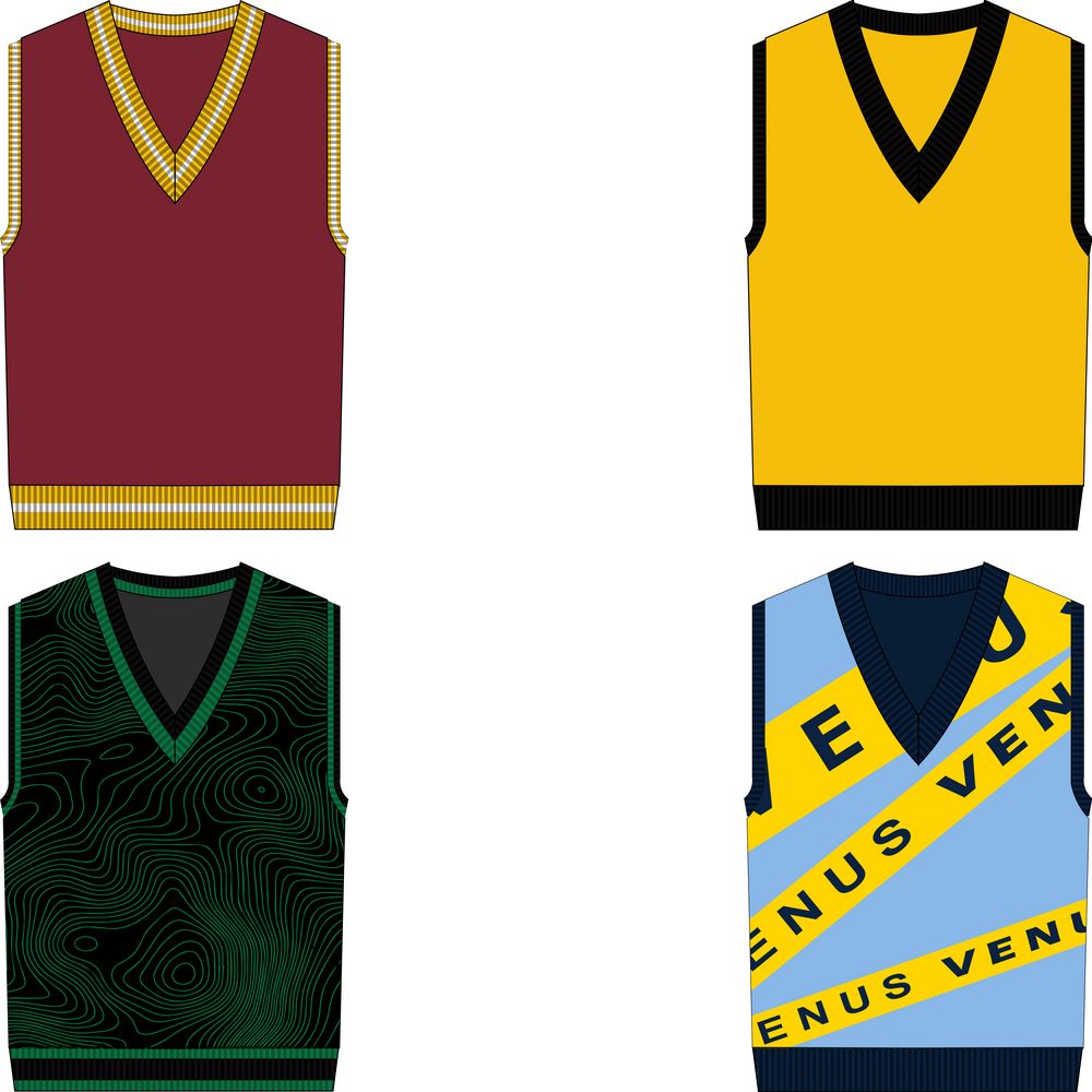 Жилет с вывязанным логотипом и индивидуальным рисунком в фирменной цветовой гамме.