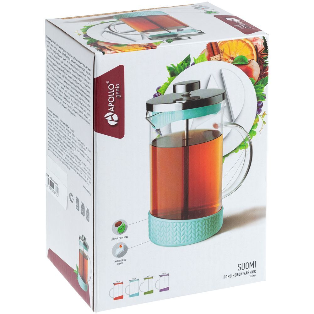 Френч-пресс Suomi особенно хорошо подойдет для заваривания чая. Металлический фильтр обеспечивает чистоту напитка. Съемная силиконовая основа защищает кухонные поверхности от воздействия высокой температуры, а ненагревающаяся ручка не обжигает руки. Крышка имеет дополнительный фильтр для задерживания крупных частиц.