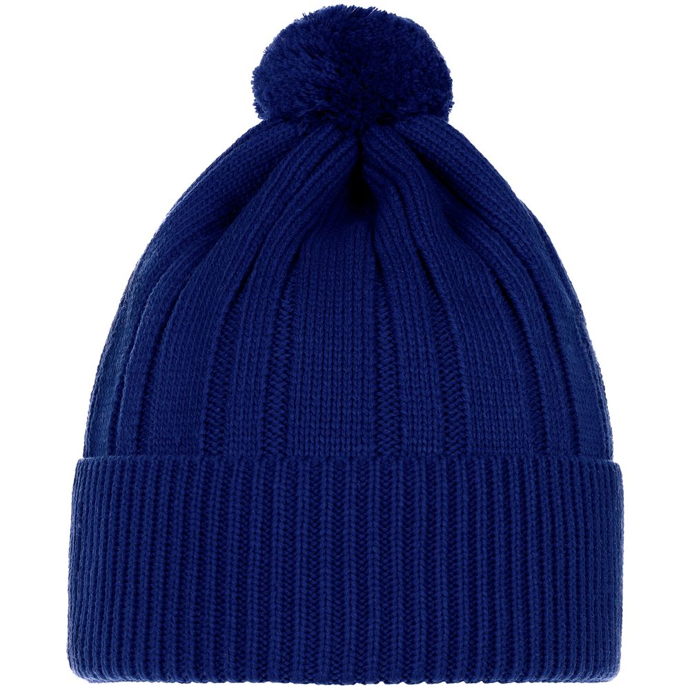 Однослойная шапка фактурной вязки с помпоном и широким отворотом.