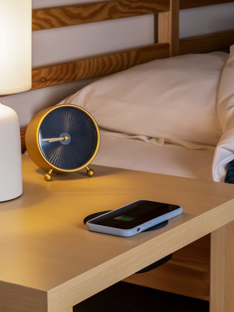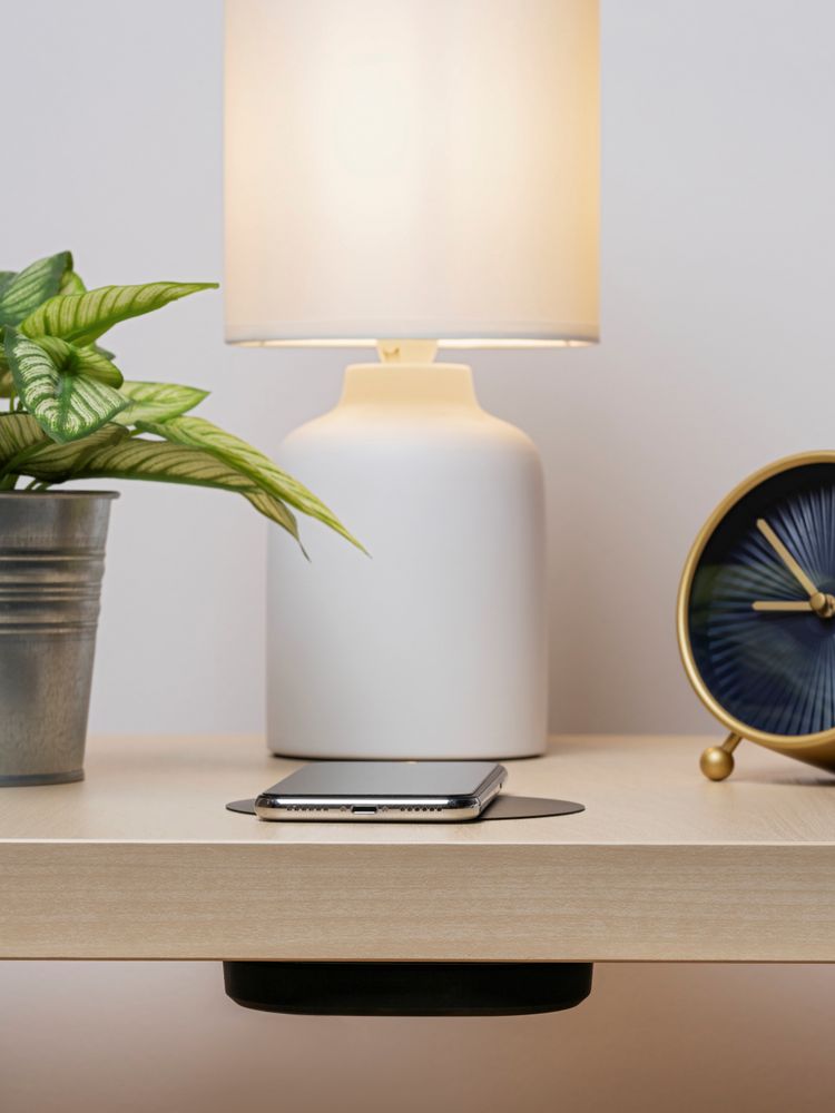 Тонкий декоративный пластиковый круг обозначает место зарядки, а противоскользящее покрытие позволяет надежно закрепить его на большинстве поверхностей, а потом удалить без следа.
