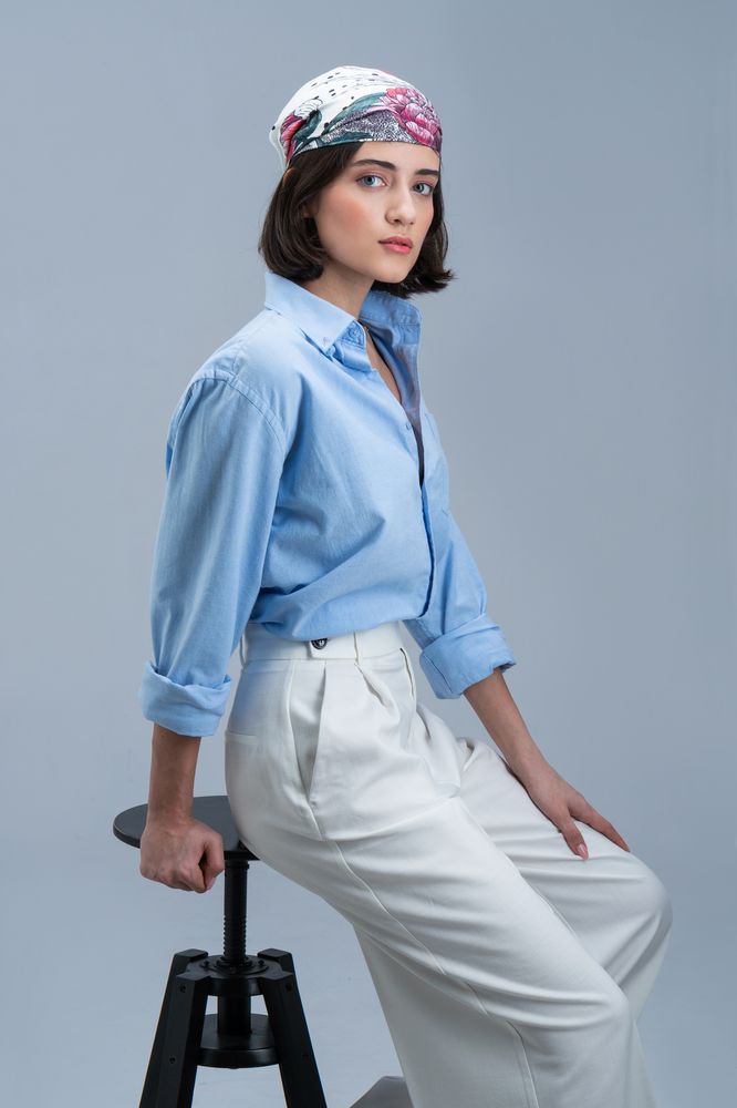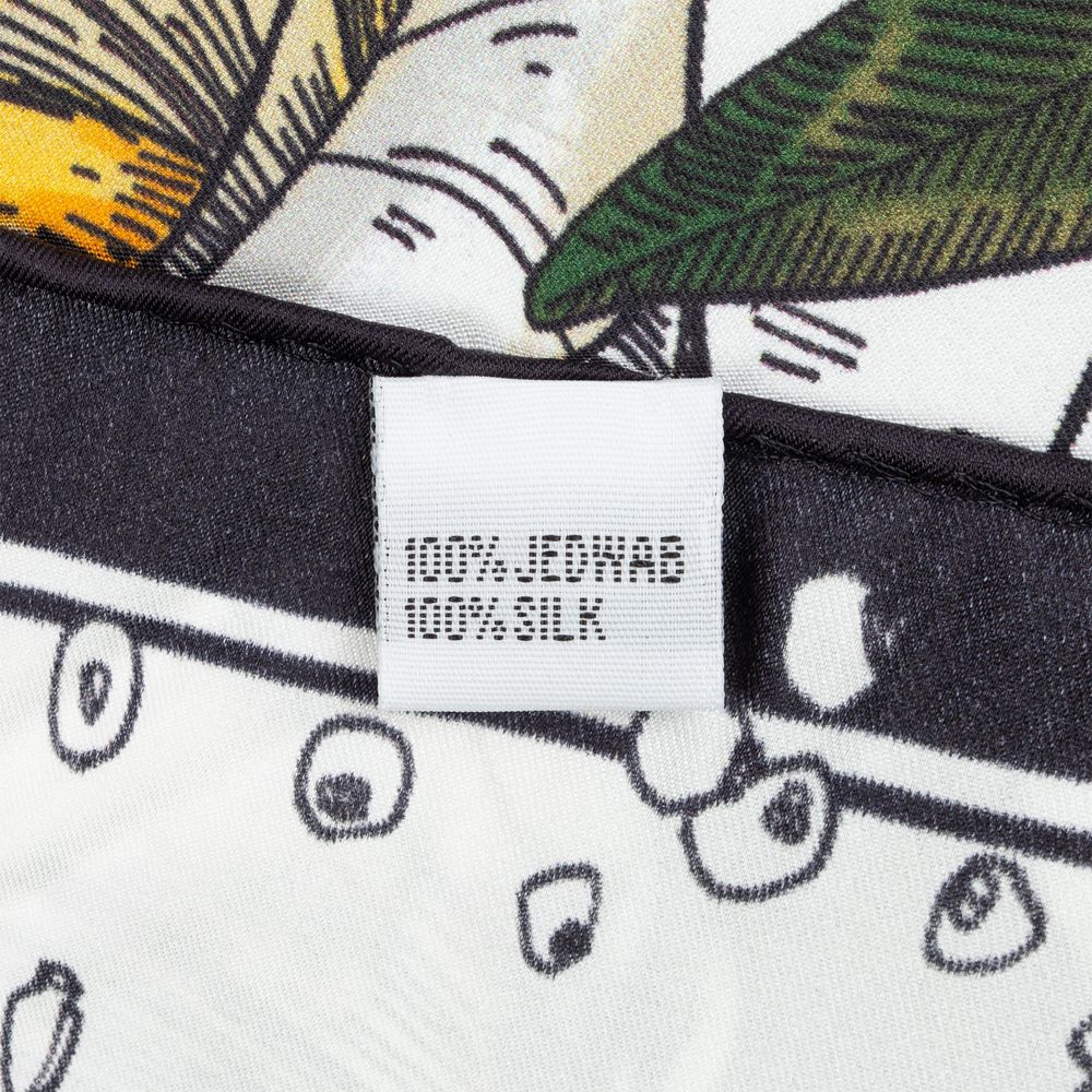 Шелковый платок с цветочным принтом открывает простор фантазии — его можно использовать как шарф, головной убор или декоративный элемент для верхней одежды и аксессуаров.