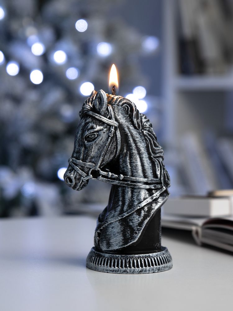 Свеча фигурная «Бюст лошади», серебристая