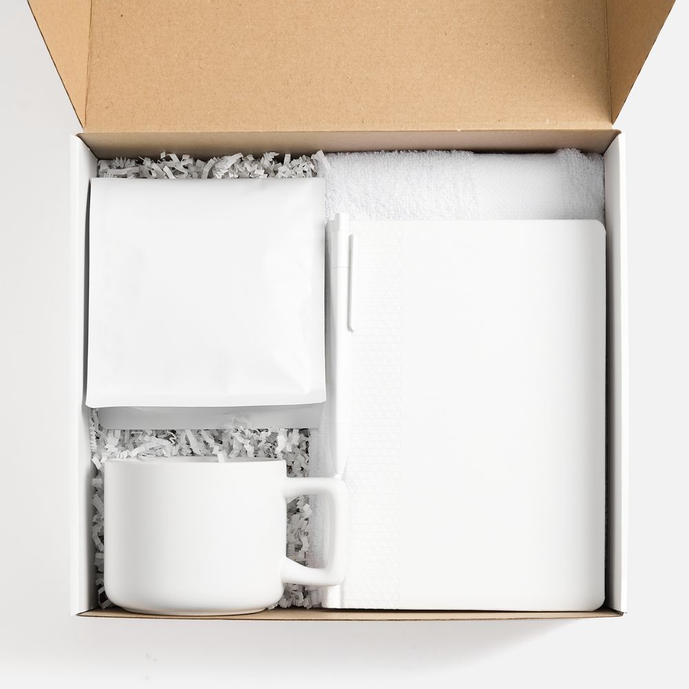Большая матовая кружка создаст особое настроение и подарит истинное удовольствие от каждого глотка свежесваренного зернового кофе. Мягкое полотенце средней величины — для самых комфортных утренних ритуалов, а стильный ежедневник с удобной ручкой поможет начать день с важных заметок и планов.