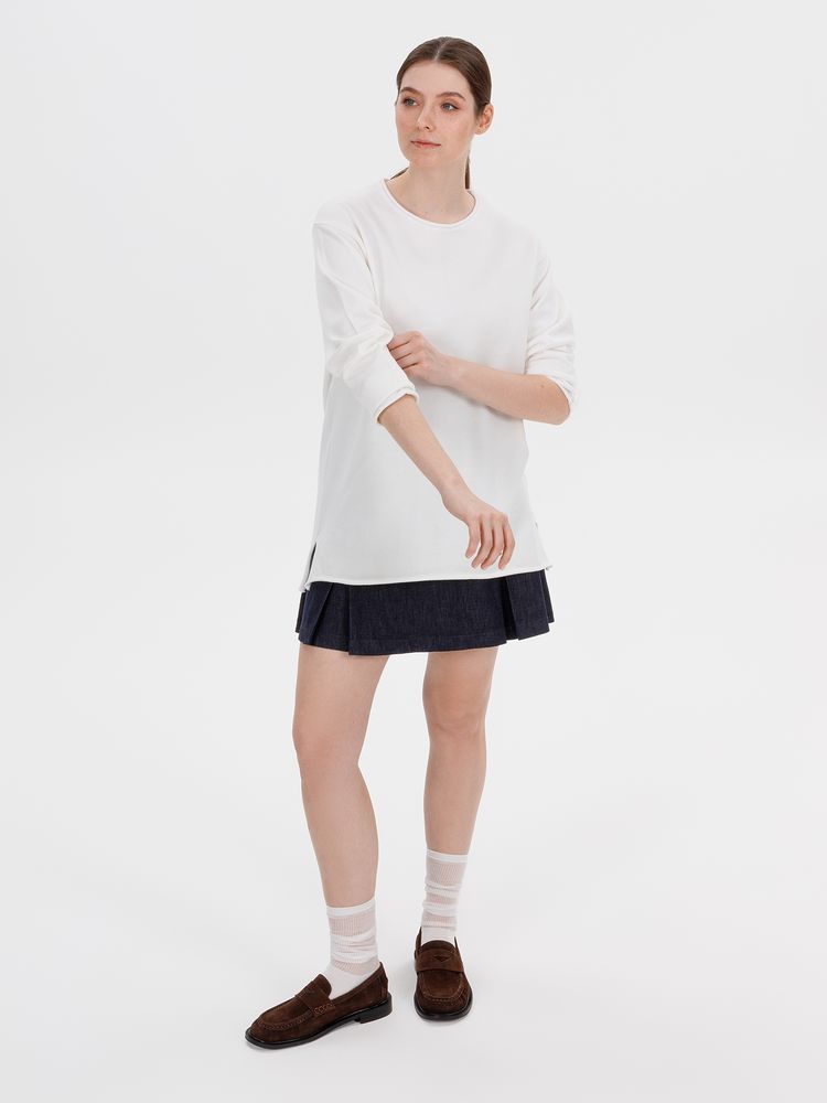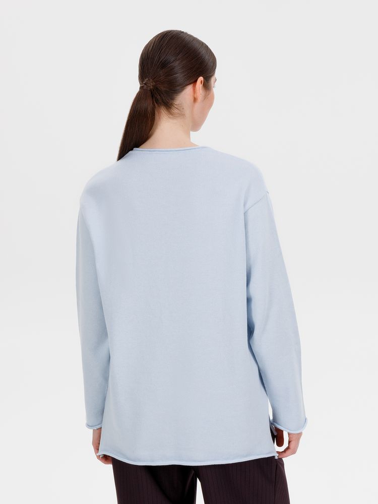 Лонгслив Fuori средней плотности с широким воротом, спущенной линией плеча и свободно подворачивающимися краями по низу, на рукавах и вороте, которые добавляют модели еще большей расслабленности. Прозрачная бирка с логотипом бренда на рукаве не нарушает минималистичности образа.