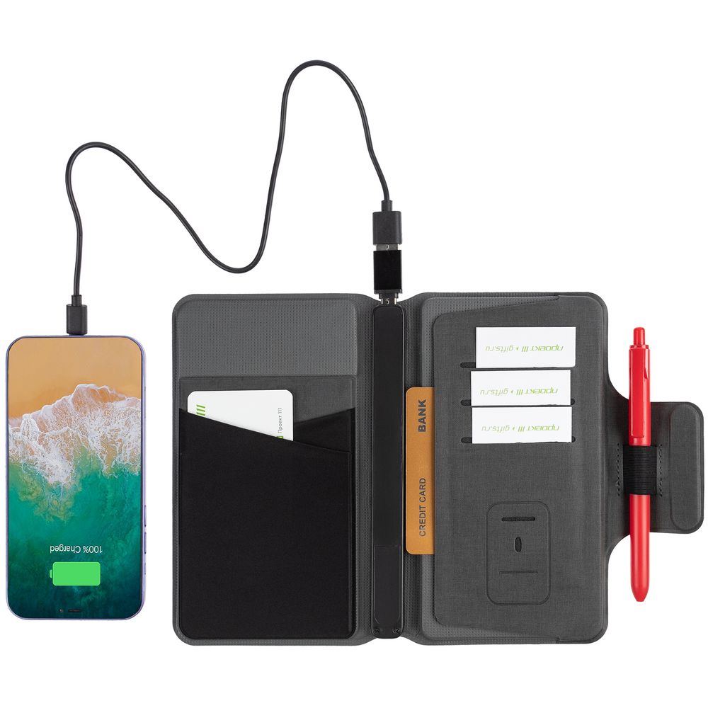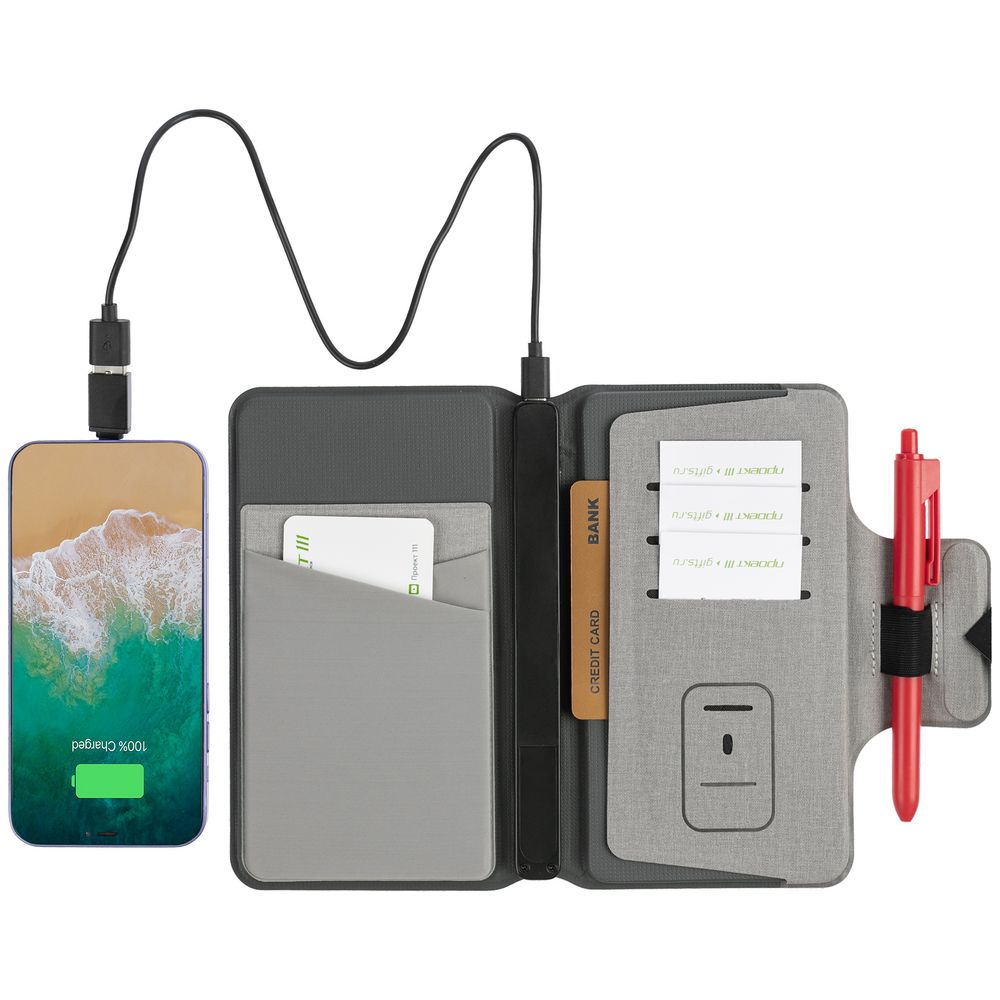 Дорожный органайзер с аккумулятором и беспроводной зарядкой включает: