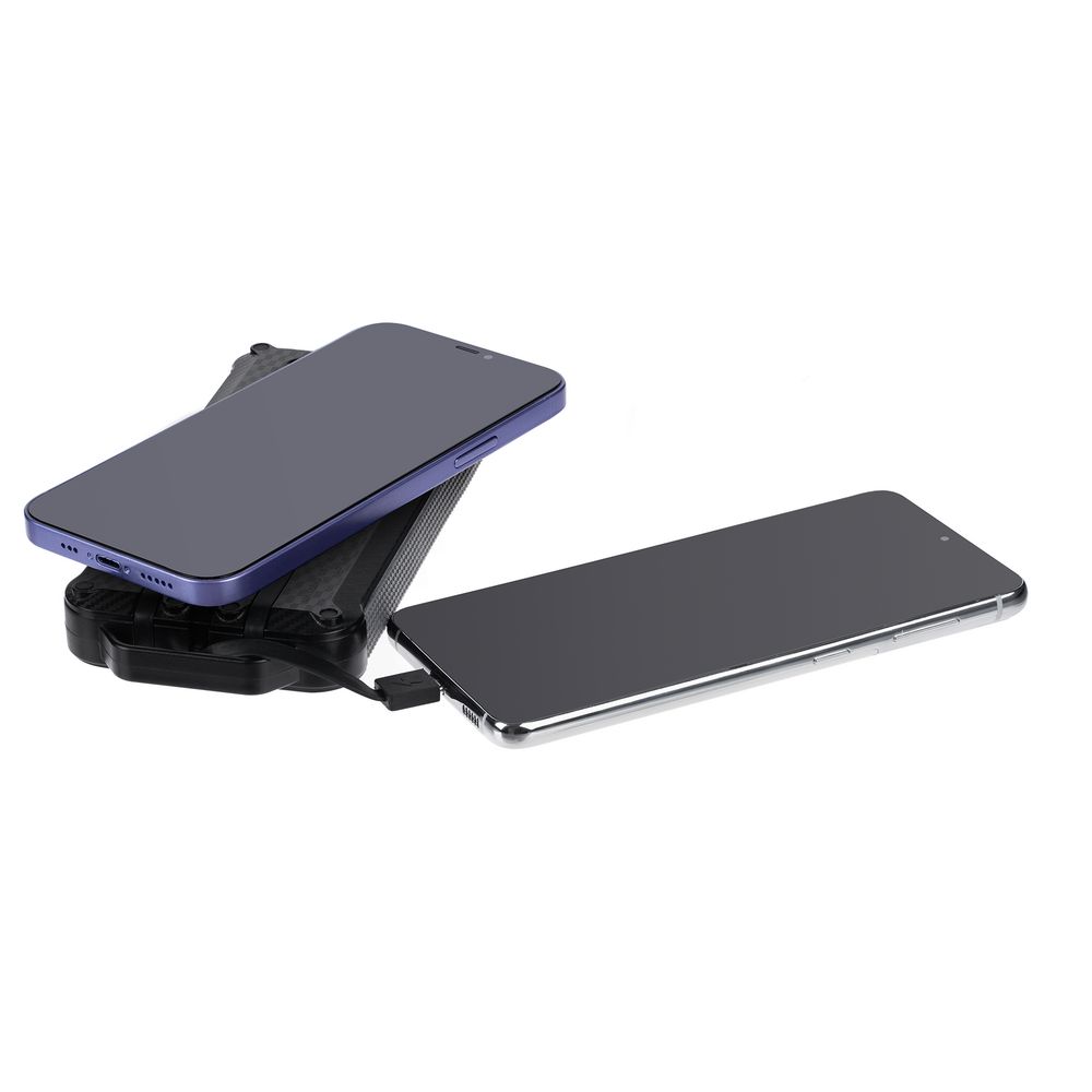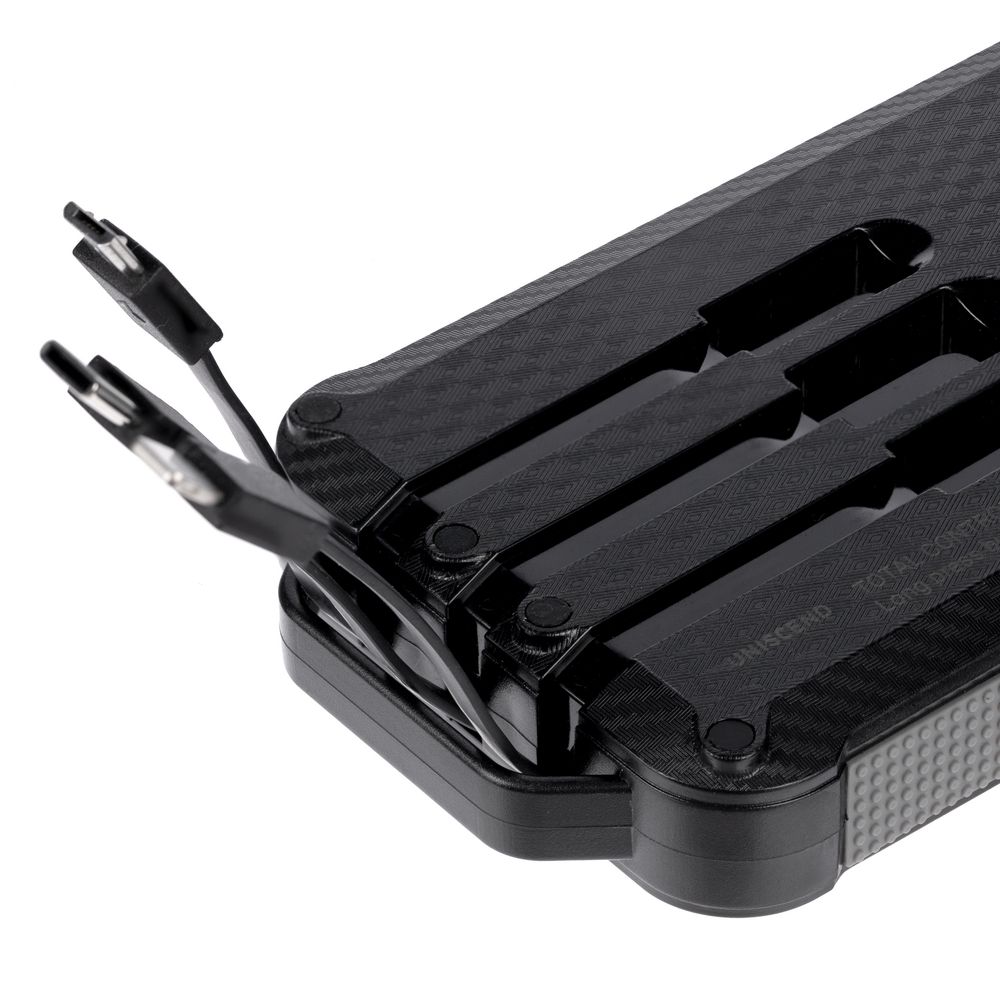 Total Control — настоящий outdoor-аккумулятор с ударопрочным корпусом и защитой от пыли и брызг, который не страшно взять в поход. Слот для беспроводной зарядки и 3 встроенных кабеля с разъемами Micro USB, Type C и Lightning позволяют удобно заряжать разные типы устройств, а солнечная батарея не позволит остаться совсем без связи. Яркий фонарик осветит путь или послужит светильником в палатке.