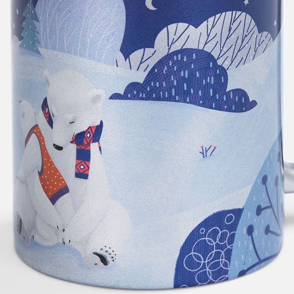 Набор «Праздничный полюс» приглашает окунуться в мир настоящей зимней эстетики и волшебной безмятежности! Это новогодний ансамбль в едином нарядном стиле: мягкий флисовый плед, кружка с тематическим принтом и изящный елочный шарик. Немного сказочные изображения с милыми белыми мишками на подарочной коробке и кружке задают тон всему набору, вызывая радость и улыбку.
