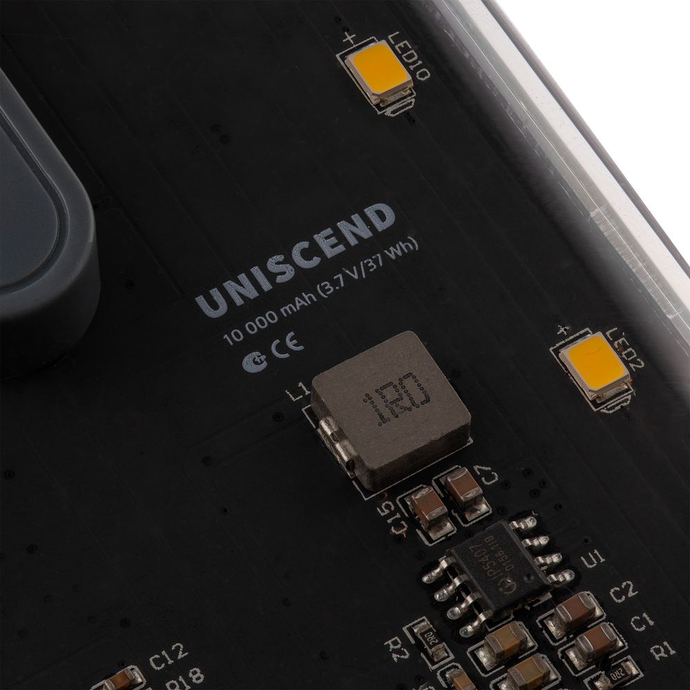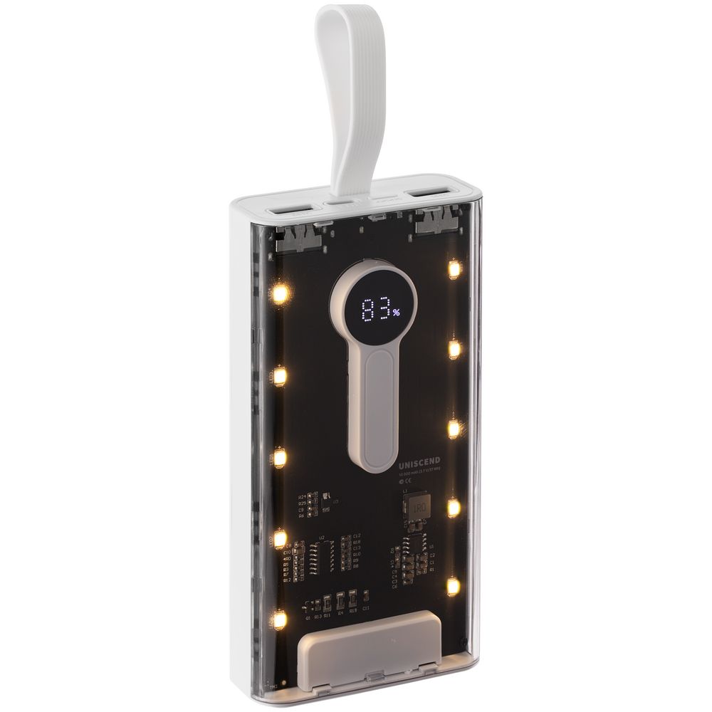 Необычный дизайн коллекции Uniscend Trellis выгодно выделяет новую серию устройств из прозаичного ряда внешних аккумуляторов. Они не поддерживают беспроводную зарядку, зато точно привлекают внимание: под прозрачной панелью хорошо видны электронная начинка и цифровой индикатор оставшегося в аккумуляторе заряда, а мягкая подсветка светодиодами теплого оттенка логичным образом дополняет технологичный внешний вид.
