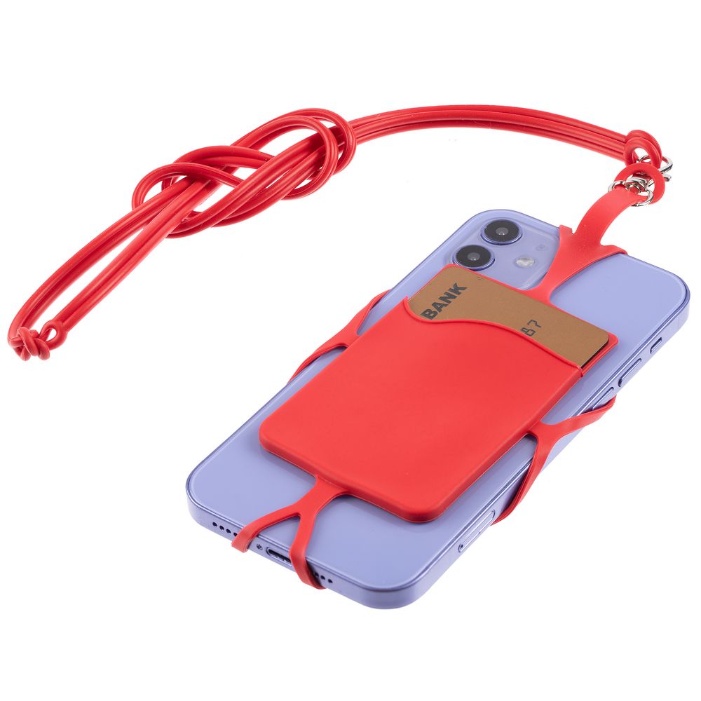 Чехол для карточки с креплением на телефон. Длина шнурка позволяет носить телефон на шее.