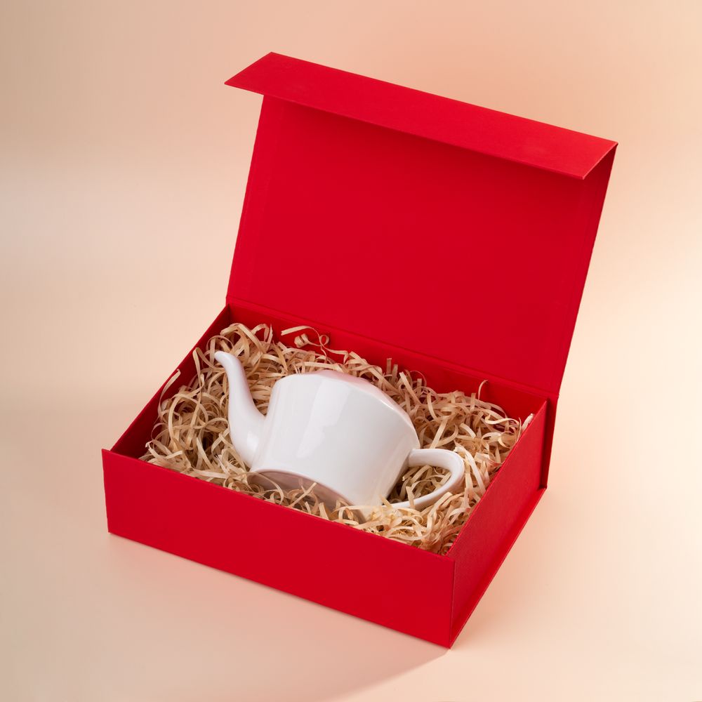 Коробка из переплетного картона, кашированного тисненой тонированной в массе бумагой, с крышкой на магните.