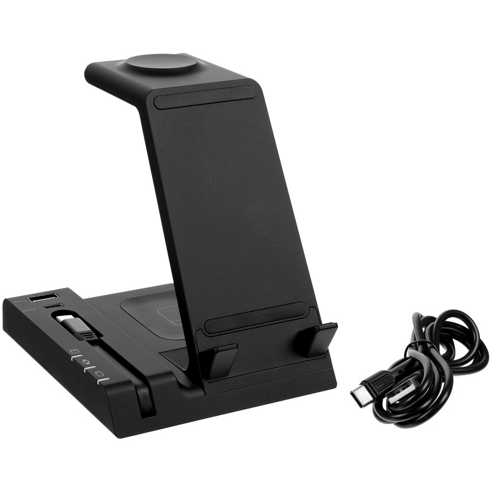 Зарядная станция Tres — полезный подарок для любителей высоких технологий. Она позволяет заряжать до 6 гаджетов одновременно: телефон, часы и наушники с поддержкой протокола беспроводной зарядки Quick Charge и еще 3 устройства через кабели с разъемами USB-А и Type-C. Благодаря компактным размерам станция не займет много места на рабочем столе или прикроватной тумбе, а все любимые электронные помощники всегда будут под рукой.