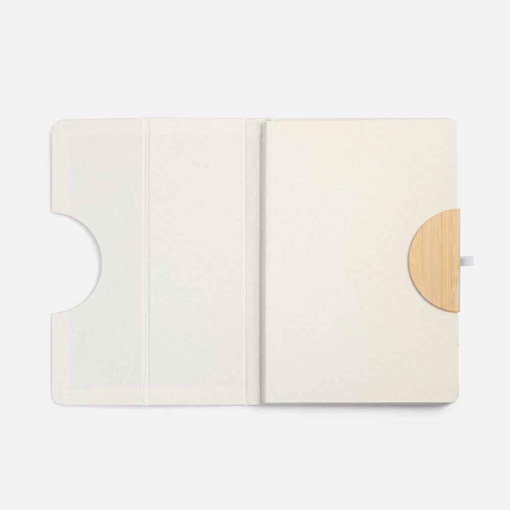Блокнот из переработанных молочных пакетов, дополнен цветными петлей-резинкой для ручки, белым ляссе и резинкой на обложку.